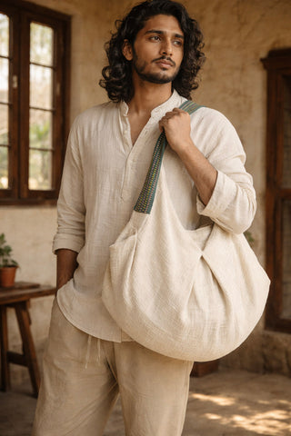 In this fast paced fashion world,We create organic, zero-waste designs that areย handwoven by our local artisans. Our creations aim to comfort both body and mind, letting you shop with ease from our exclusive range, knowing each choice supports artisans and reduces the carbon footprint.