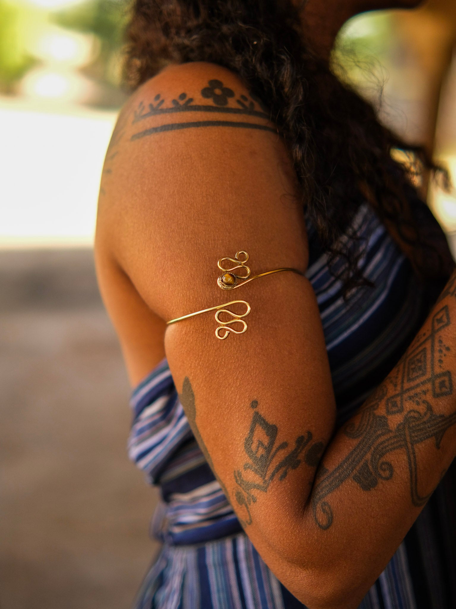 Own your essence with the Astitva Brass Armlet, a handcrafted tribal accessory that celebrates strength, identity, and ancient artistry.
