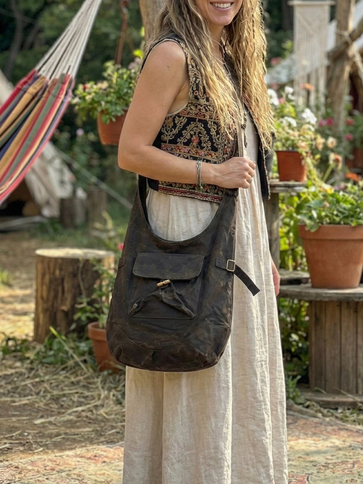 Carry all your essentials in style with the Gypsy Sling Bag. Made with durable cotton canvas, this vintage-inspired bag features a unique color faded effect. The adjustable belt allows for a comfortable fit, while the main compartment and smaller outside compartment keep your belongings organized. Don't miss out on this quirky and fun accessory!