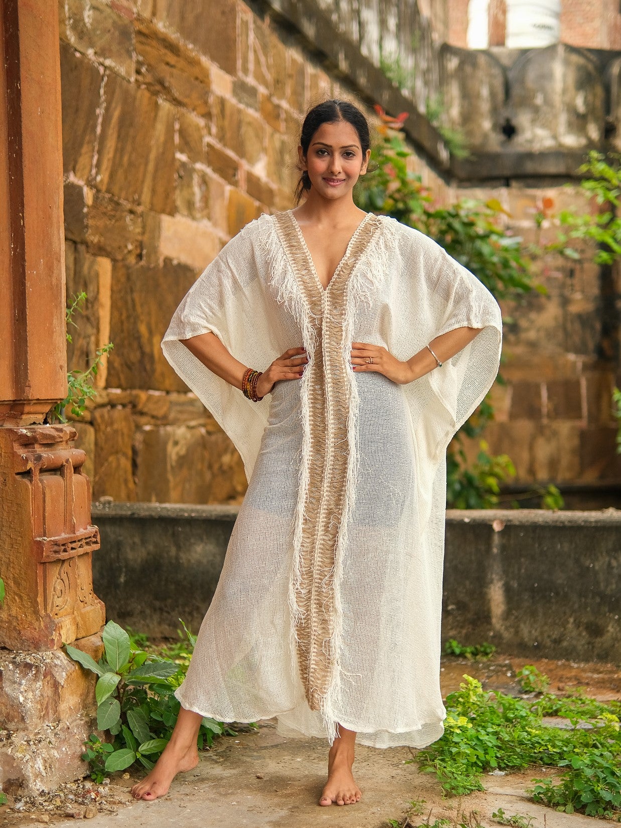 Aaravi Kaftan Dress – Handwoven Boho wear