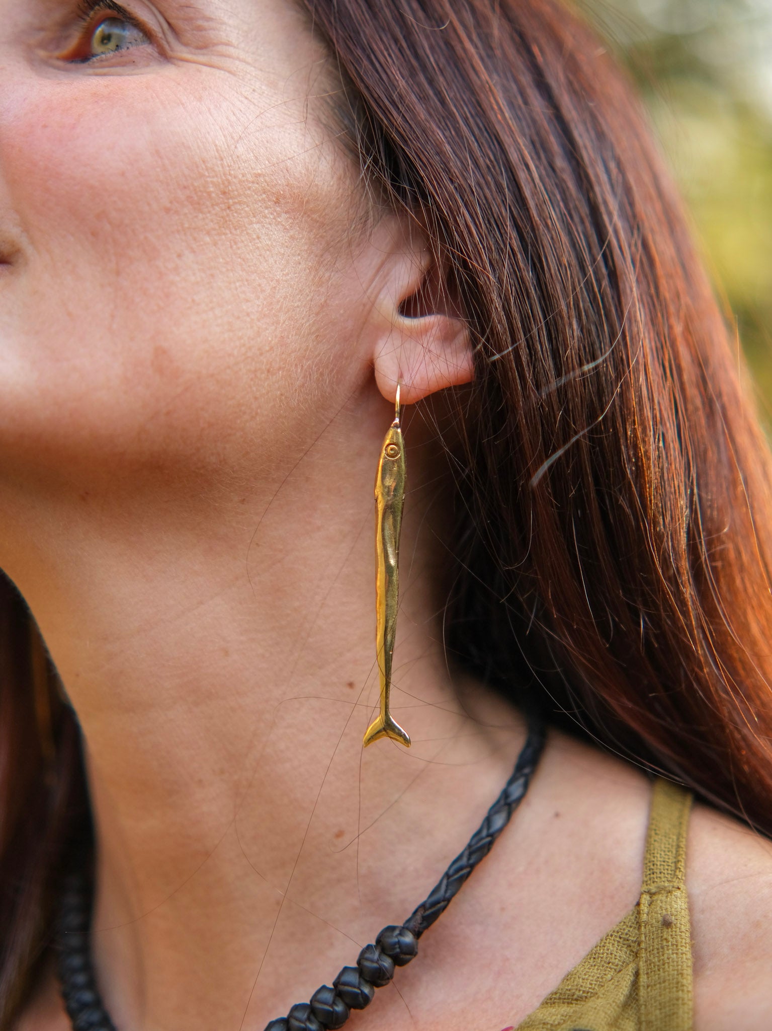 Golden Fish Earrings – Lightweight Boho Dangle | Crystal Heal