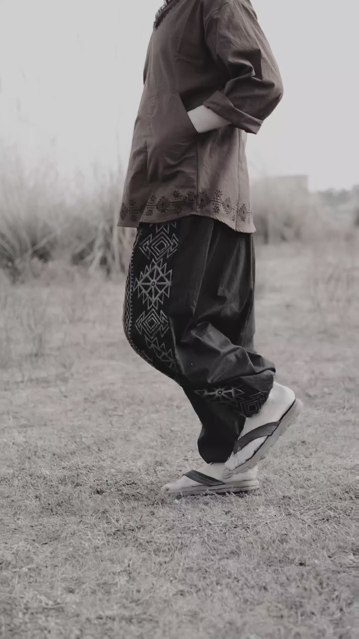 Introducing the Baggy Kurta, your one-stop-shop for a chilled out yet totally fashionable look. It's gender-neutral, made from a jute and cotton blend fabric, and comes in four stunning earthy shades. With a baggy fit, full sleeves, V neck, two pockets, and rough edges, it's great for lounging and looks even better with our tribal handmade block print. What more could you ask for? Live your best boho life today!