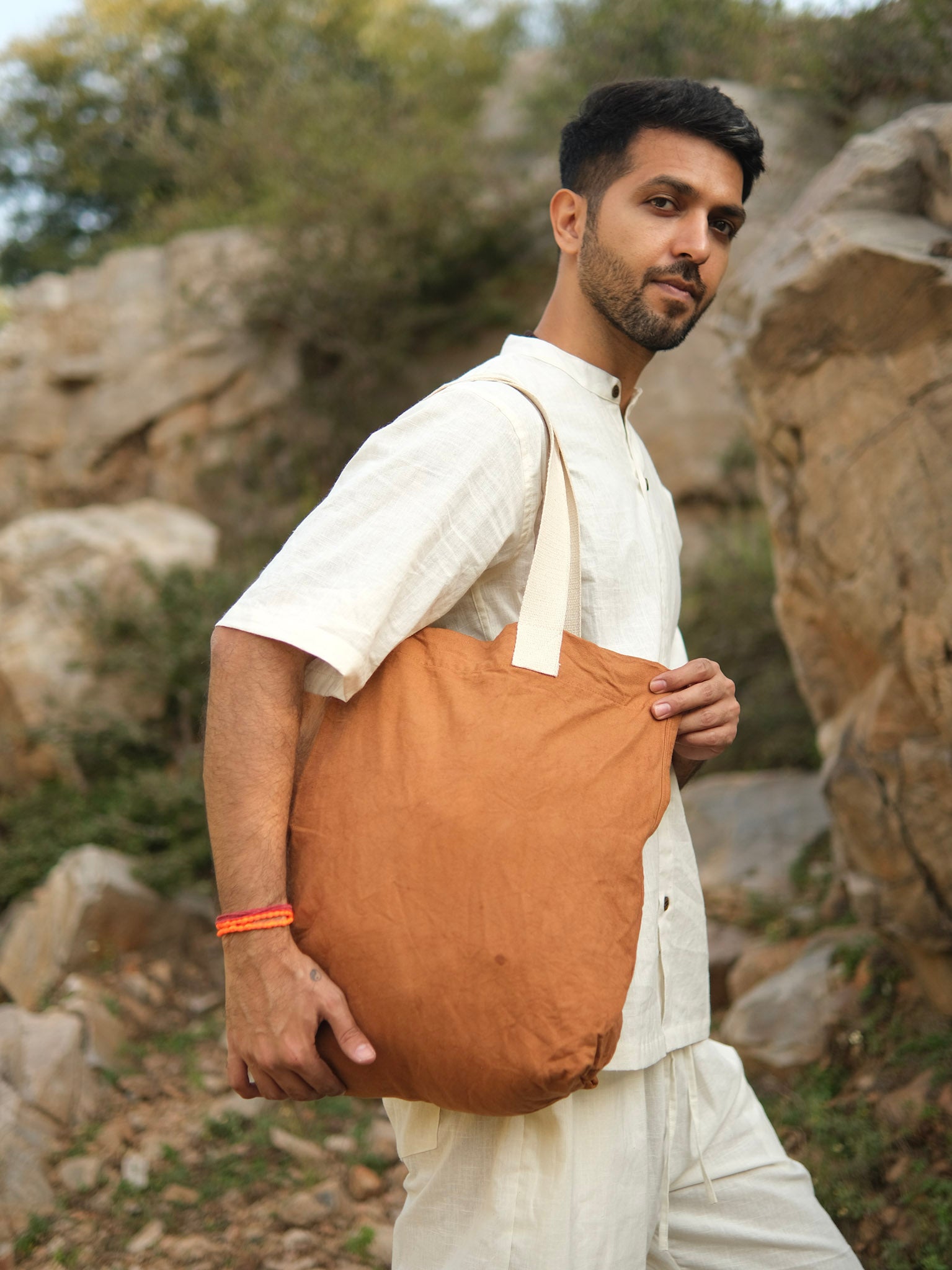 Aarav Rust Cotton Canvas Tote Bag – Minimal Eco Daily Carry – Crystal Heal