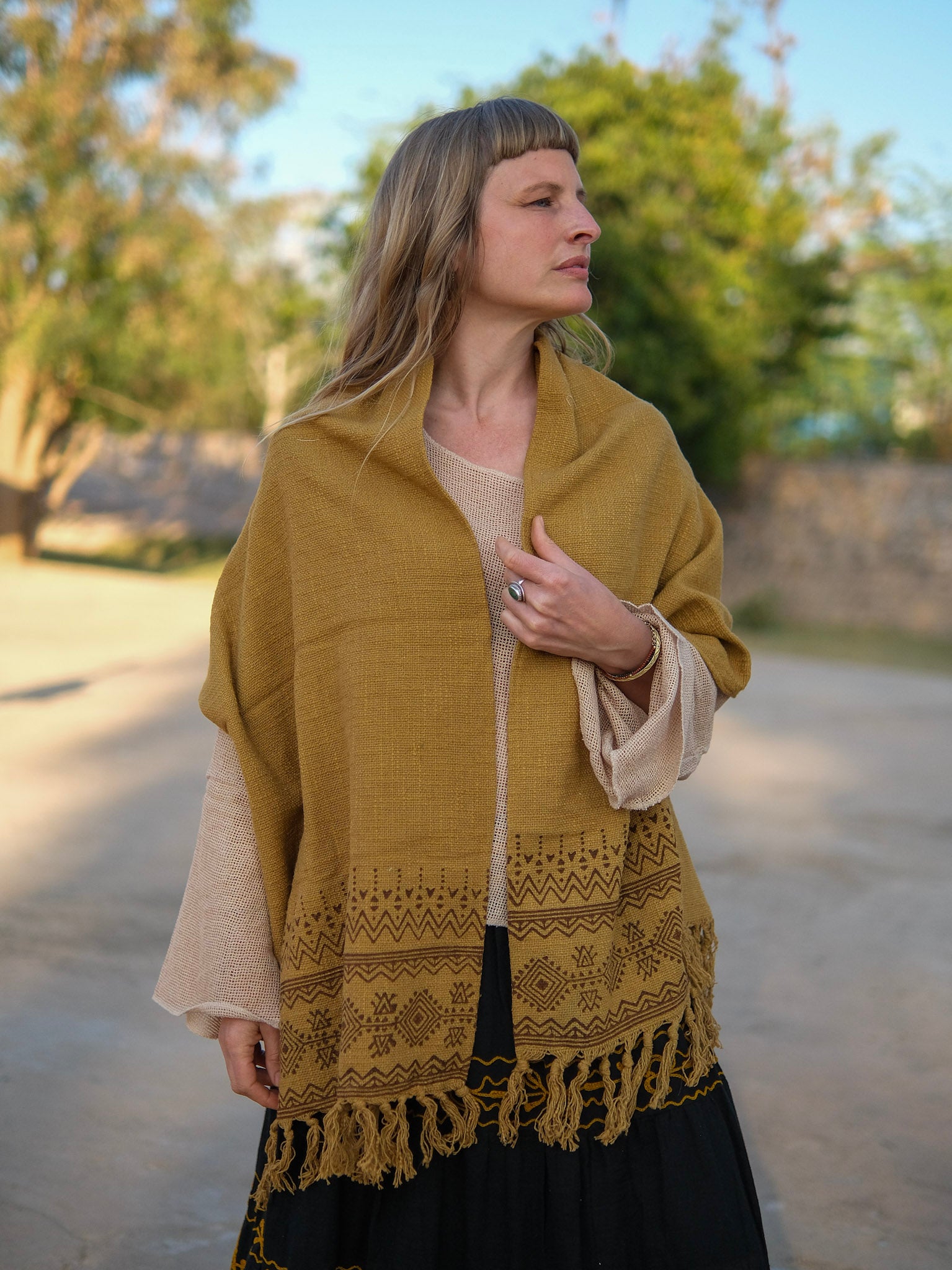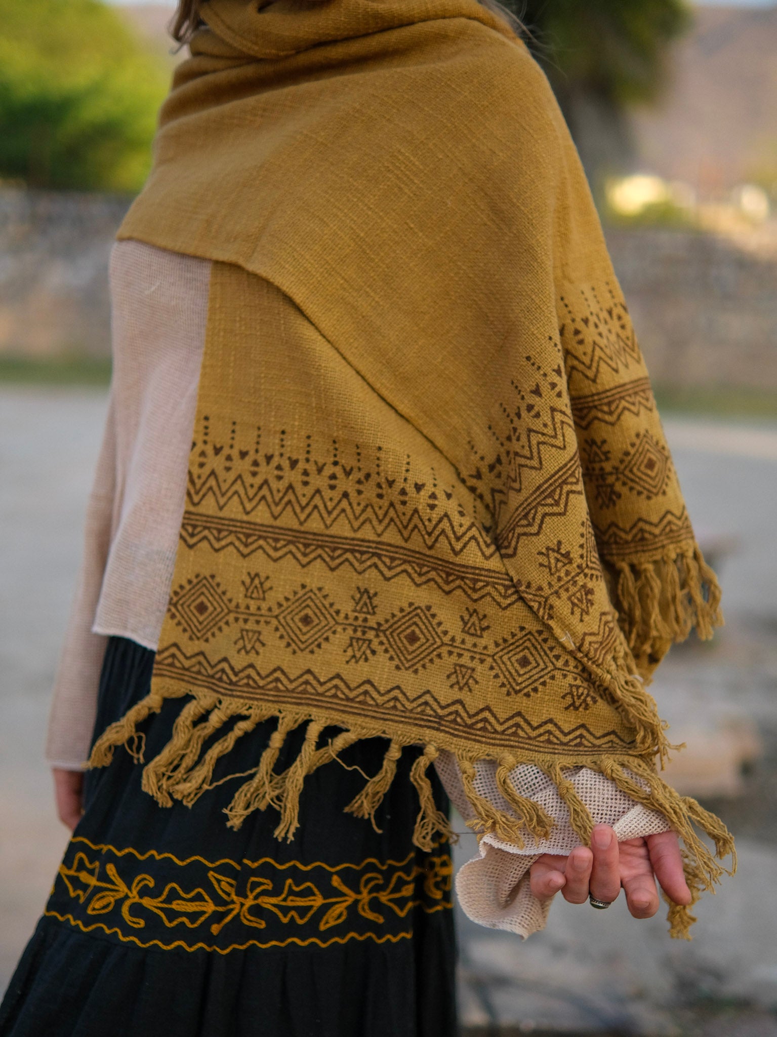 Ideal for cool evenings, travel, or mindful gatherings, this shawl is a versatile statement piece that blends comfort, culture, and understated sophistication.
