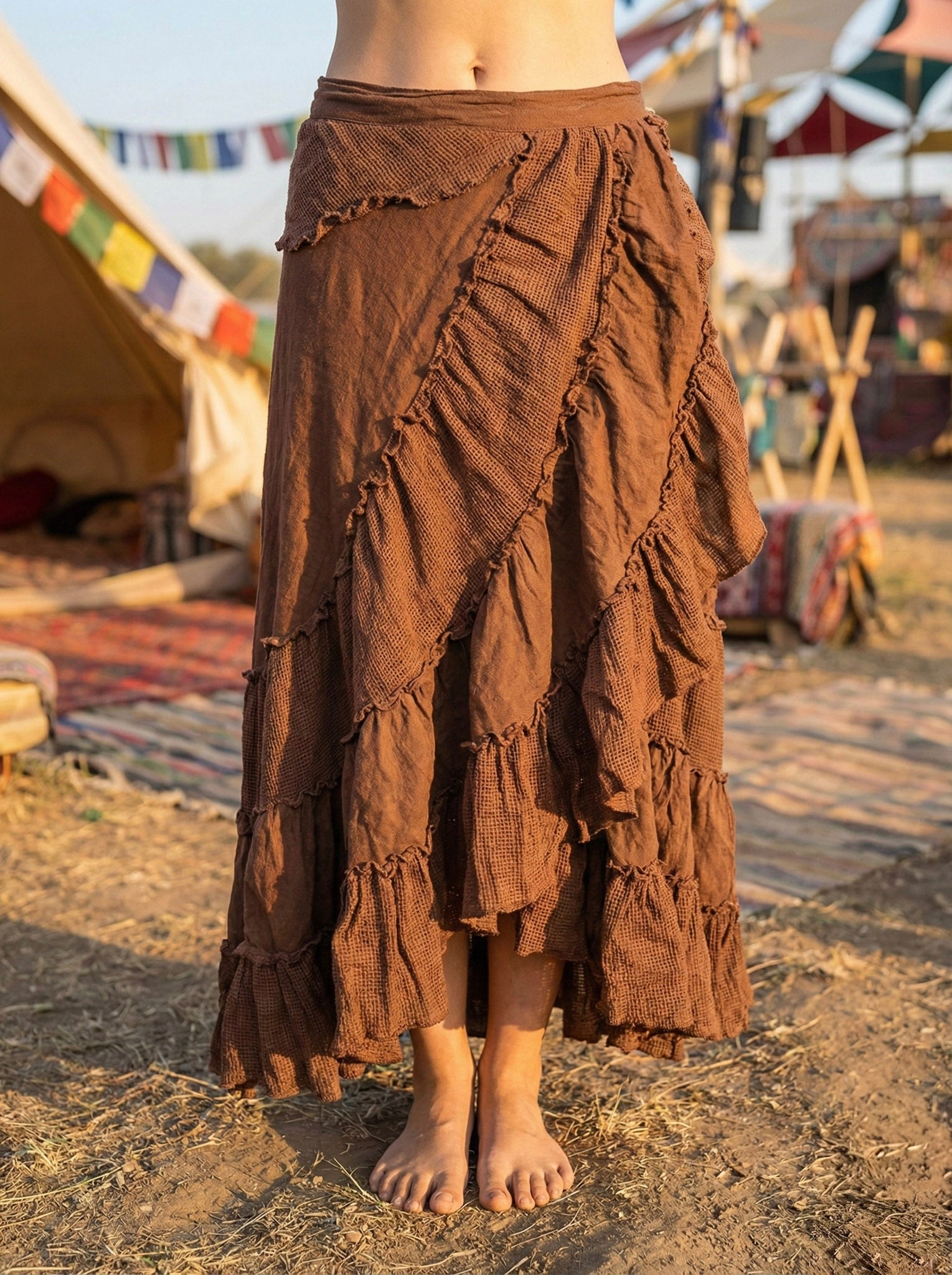 A dance of texture, layers, and movement. The Elowen Layered Wrap Skirt is designed for the free-spirited soul who finds beauty in nature and comfort in flow. Crafted from soft, breathable textured cotton — this wrap-style silhouette drapes elegantly with every step.