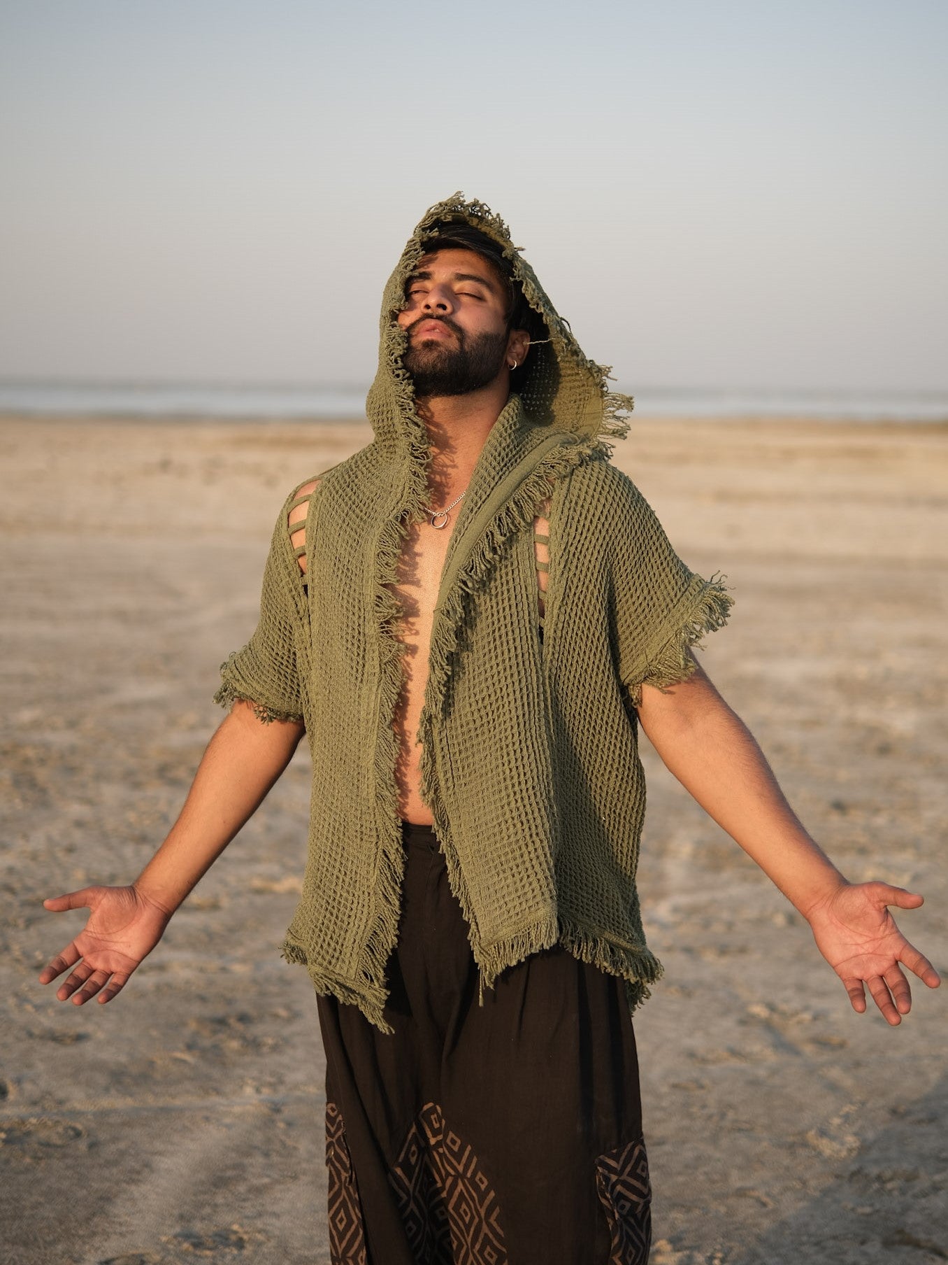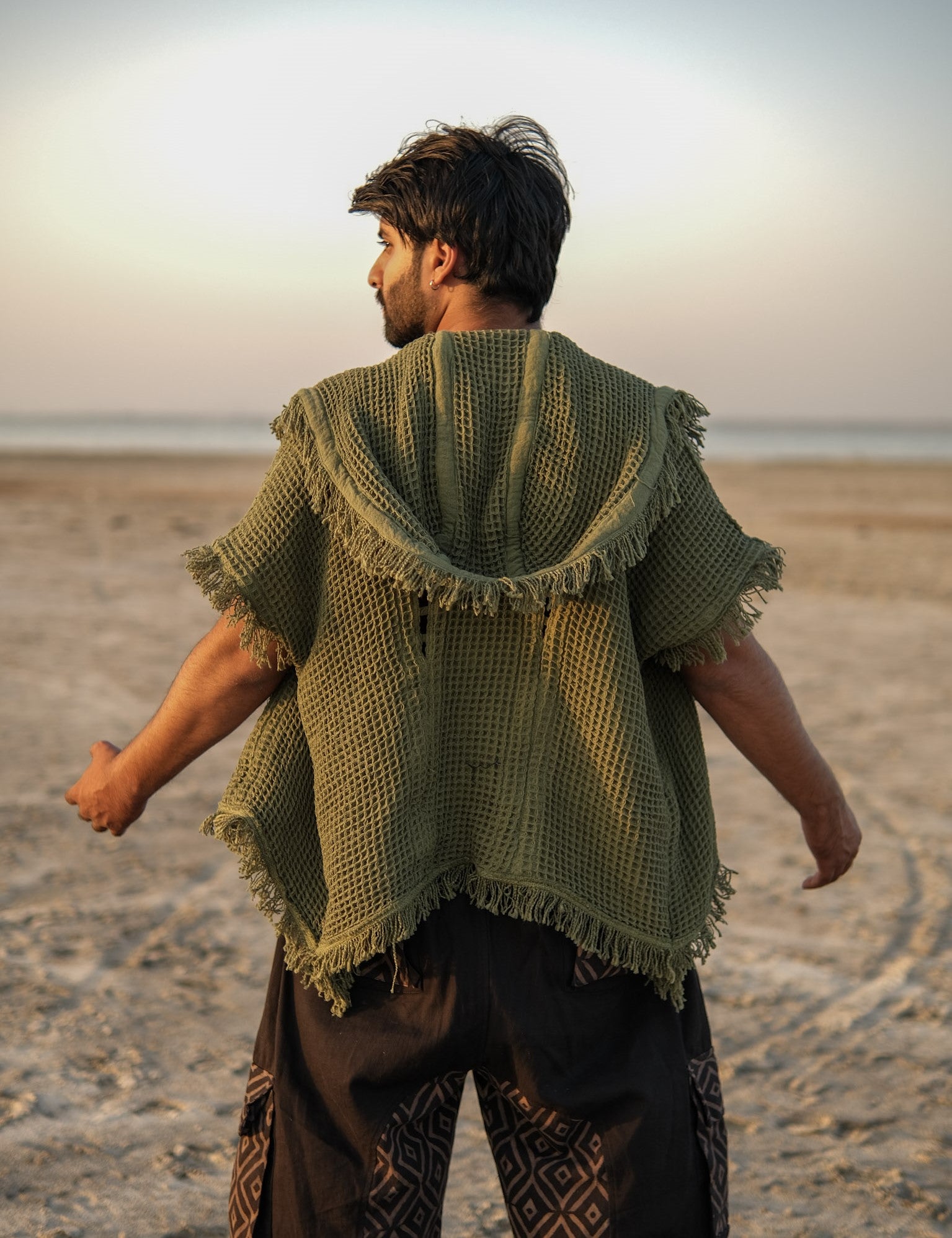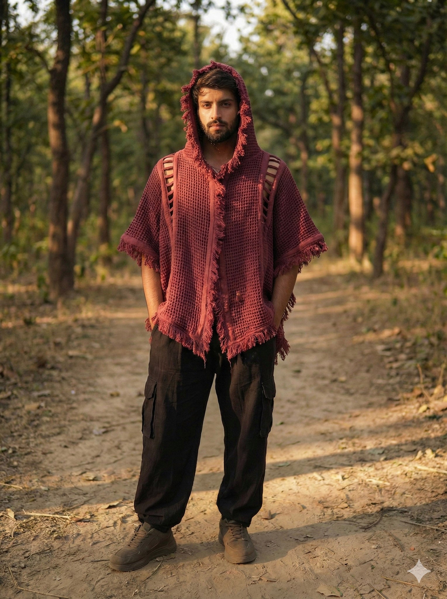Step into your free-spirited vibe with the Hazel Poncho — a uniquely handcrafted hooded poncho designed for those who live creatively and adventurously. Made with an airy waffle-texture fabric, it offers breathability and effortless style whether you're at a festival, beach escape, or desert gathering.