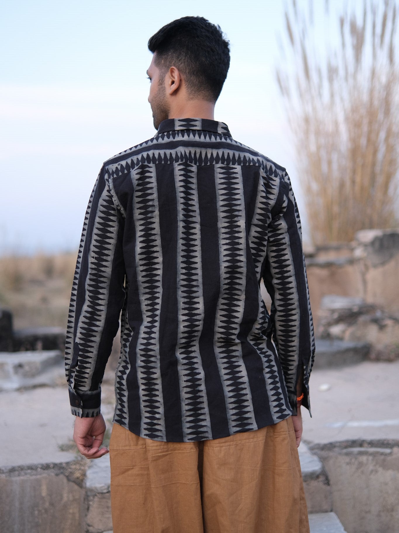 Upgrade your everyday style with this handcrafted shirt, featuring a striking geometric block-print pattern. Made from soft, breathable cotton, it offers comfort and effortless style—perfect for travel, casual outings, and weekend adventures.
