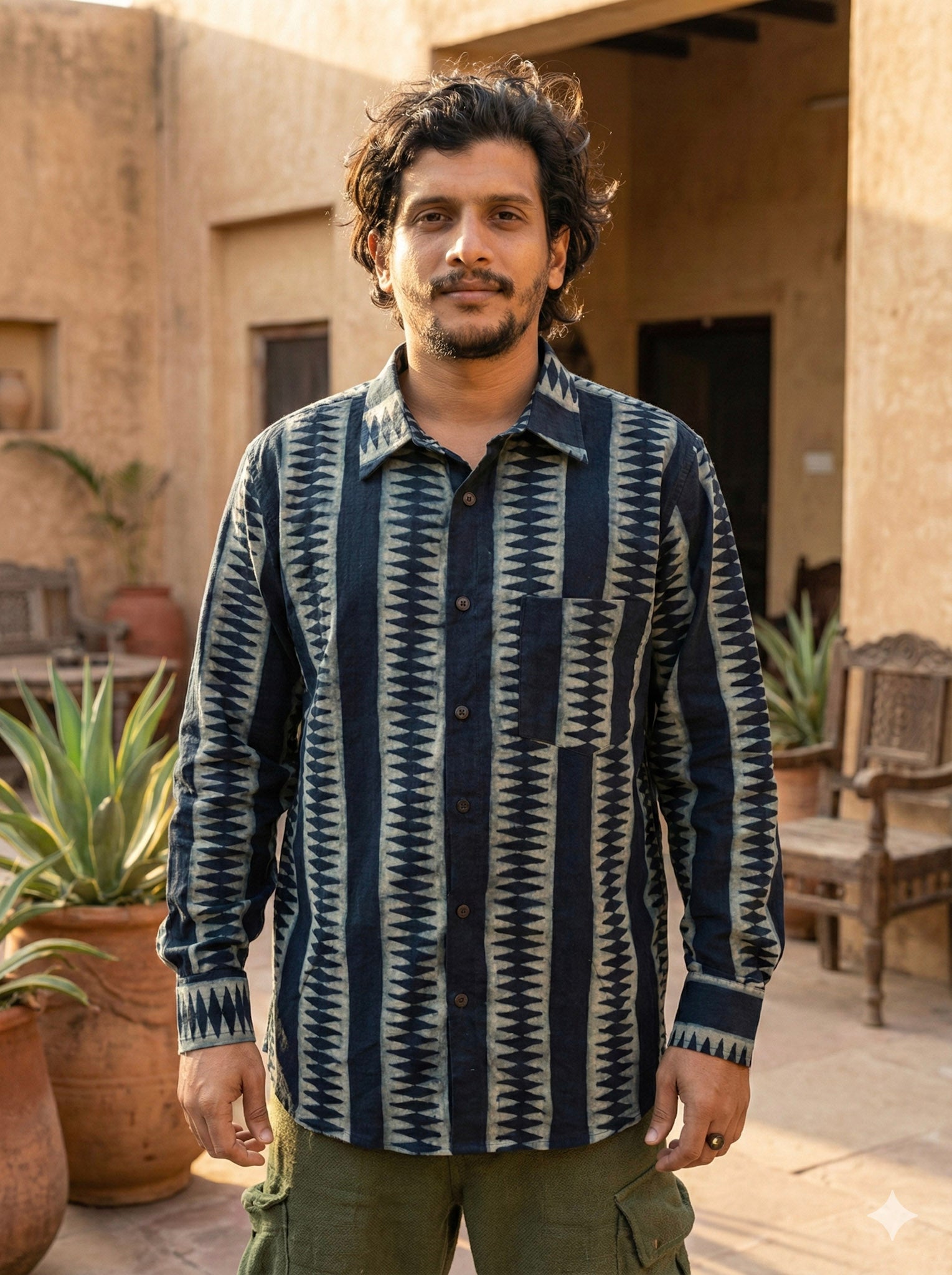 Handcrafted Geometric Cotton Shirt for Men – Casual Wear