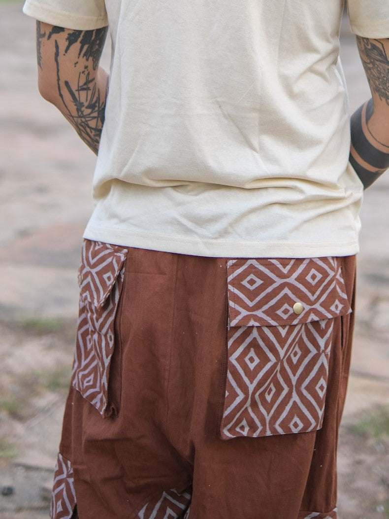 Elevate your bottom-wear game with the Raivat Tribal Cargo Pant, a perfect blend of utility and bohemian charm. Crafted from tribal-inspired prints, this pant features multiple pockets for functionality along with relaxed fit for comfort. Inspired by wander-laden fashion, this boho cargo piece works well for everyday wear, travel adventures or festival fits.