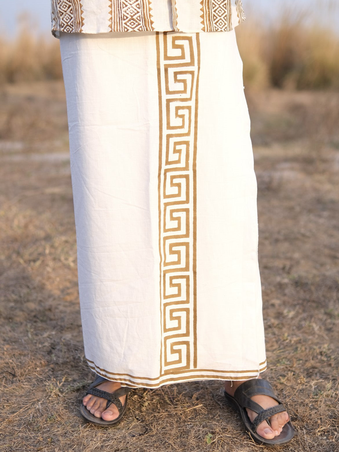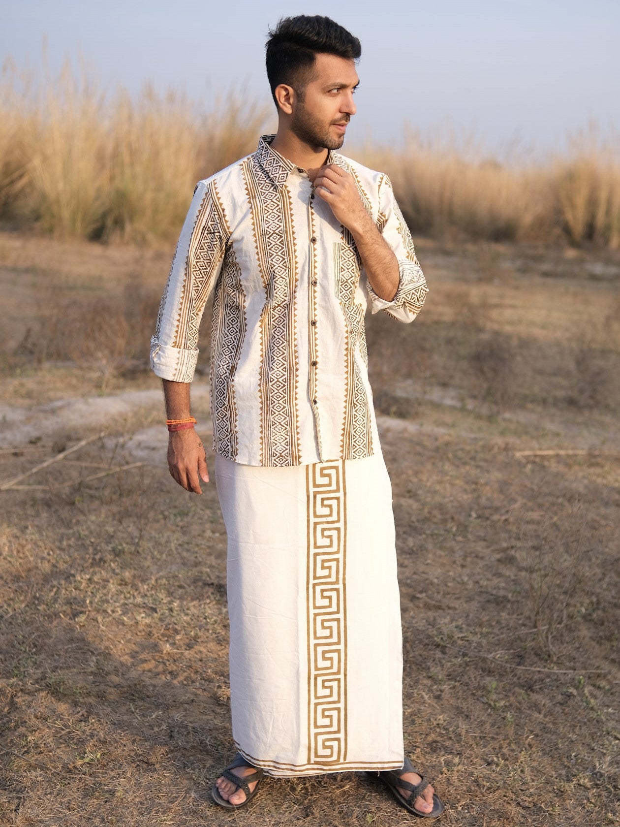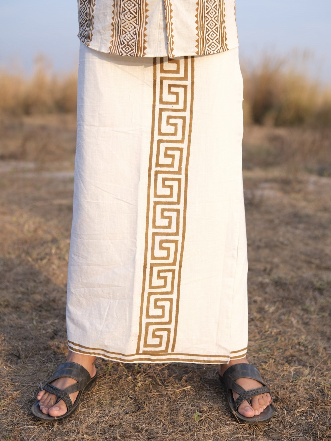 Step into timeless tradition with this Handcrafted Cotton Dhoti, designed in an elegant white shade with a unique brown tribal-pattern border. Made from soft, breathable cotton, it offers full comfort for long hours during rituals, temple visits, cultural functions, weddings, and festive occasions. The simple yet striking print adds a modern cultural flair, making it a perfect match with kurtas, shirts, or ethnic tops. Embrace heritage with a stylish touch — ideal for every traditional wardrobe!