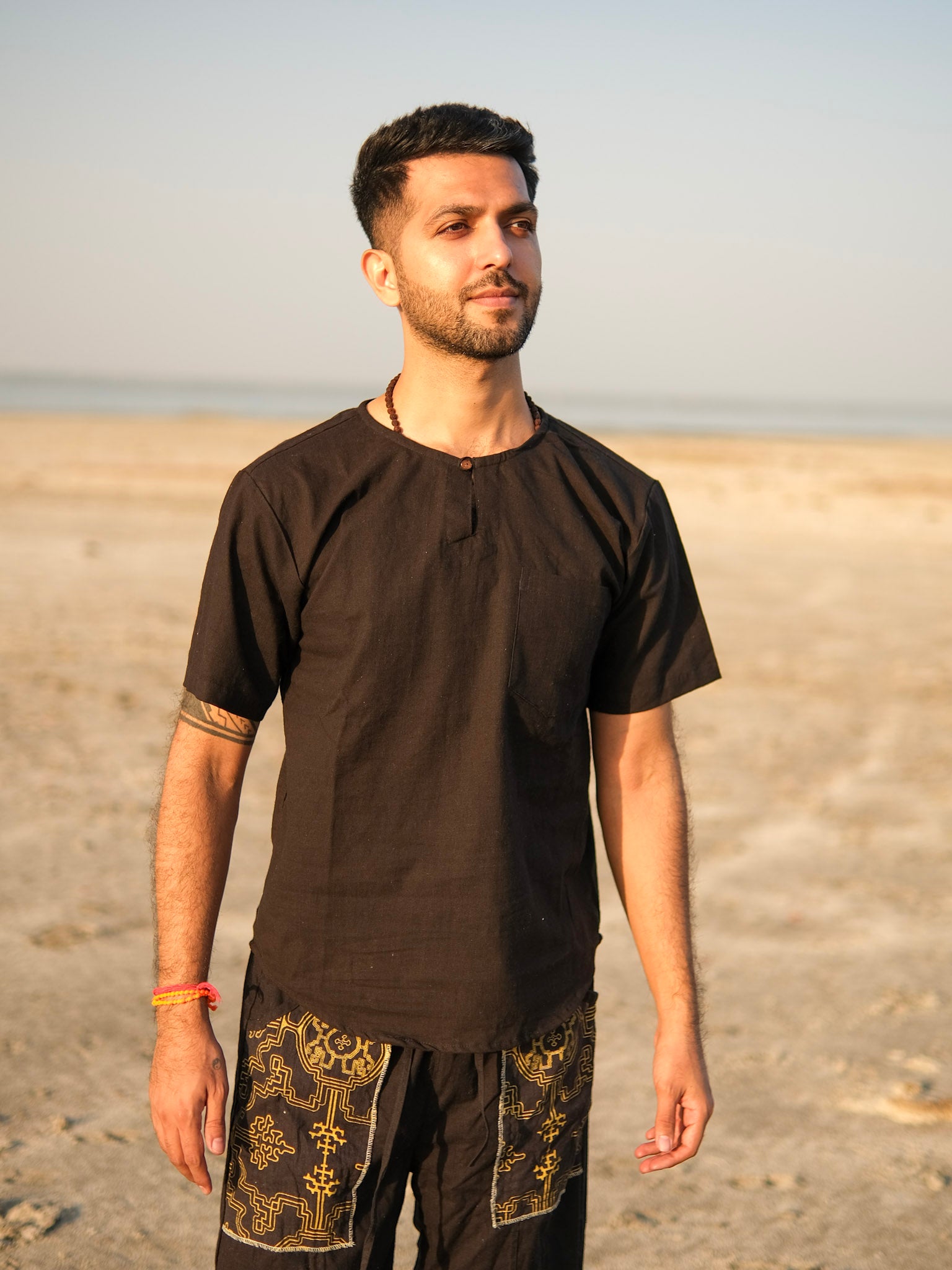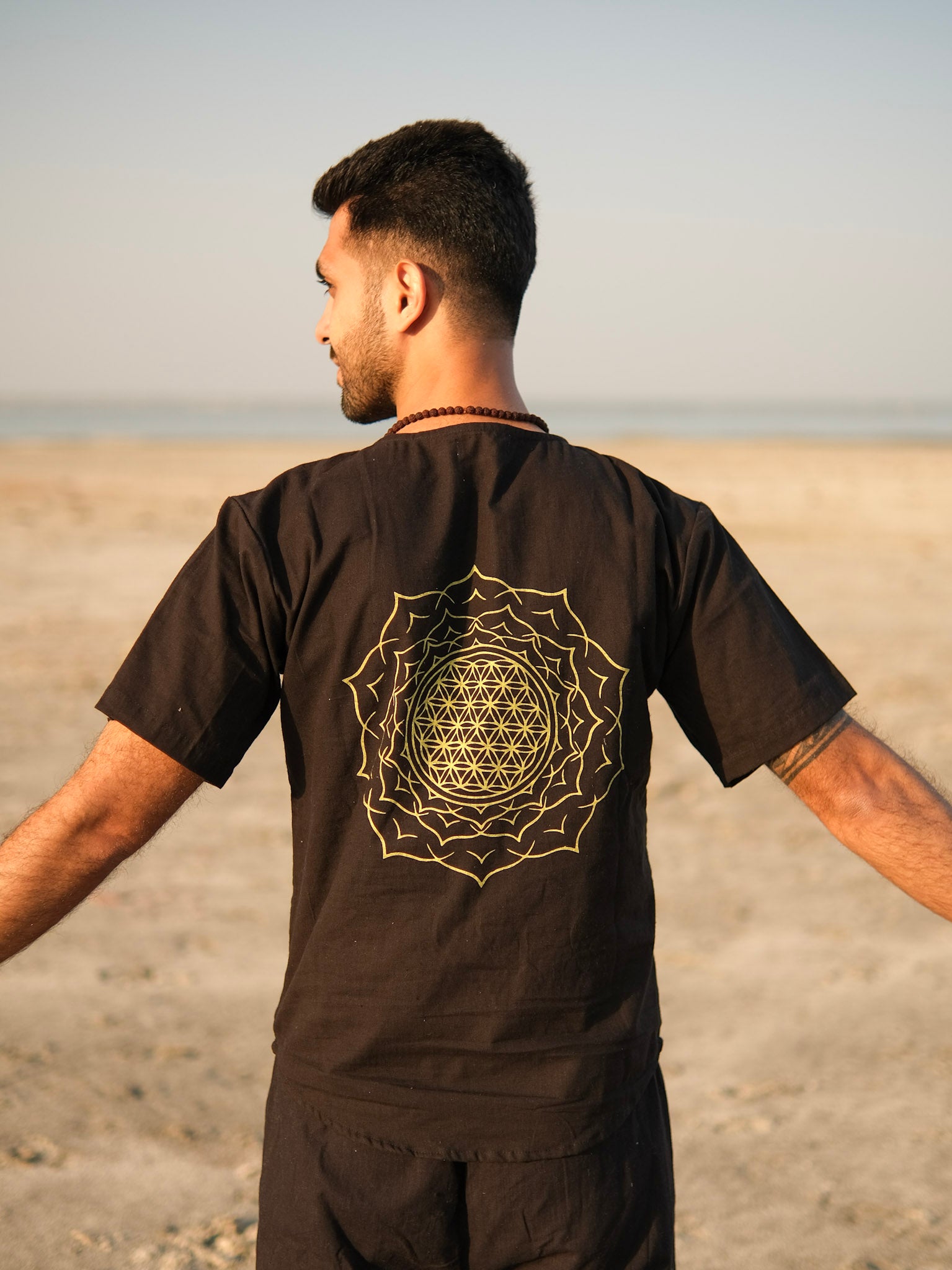 The Sahasra Mandala Printed Cotton kurta captures the essence of sacred geometry and bohemian living. Featuring an intricate mandala and Flower of Life print on the back, this kurta symbolizes harmony, balance, and inner energy. Crafted from pure cotton fabric, it offers a soft, breathable, and relaxed fit — perfect for yoga, meditation, festivals, or everyday spiritual wear.