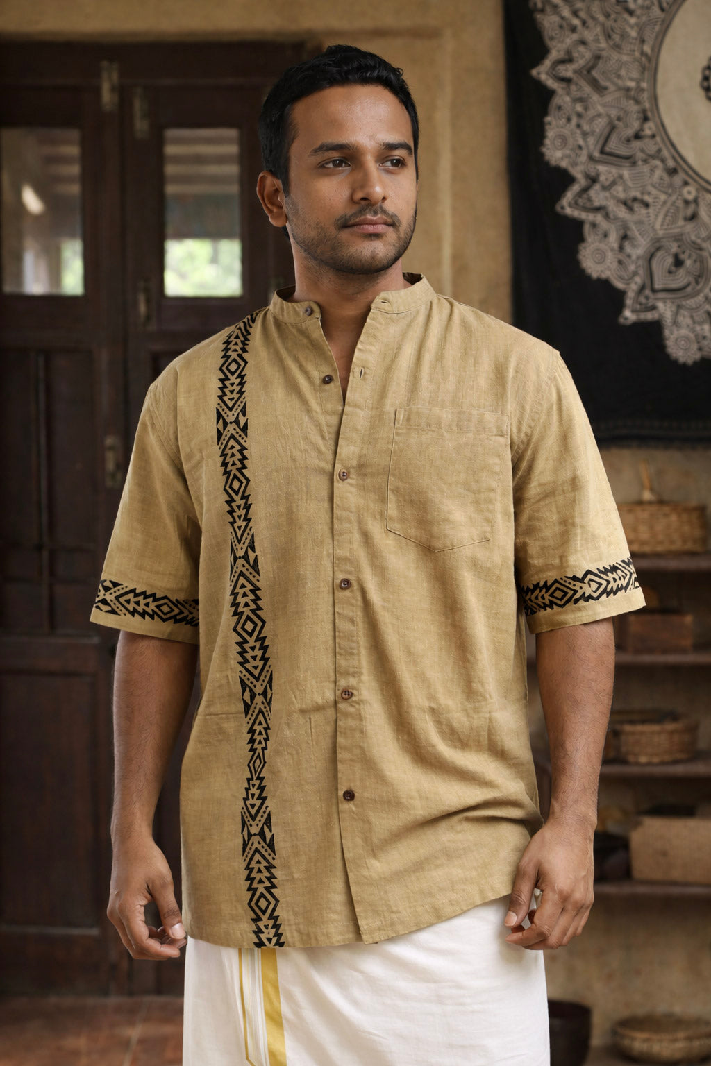 Natural Texture: The subtle variations in the handblock ink give the shirt a soulful, tactile quality that machine-made prints simply can’t replicate.
