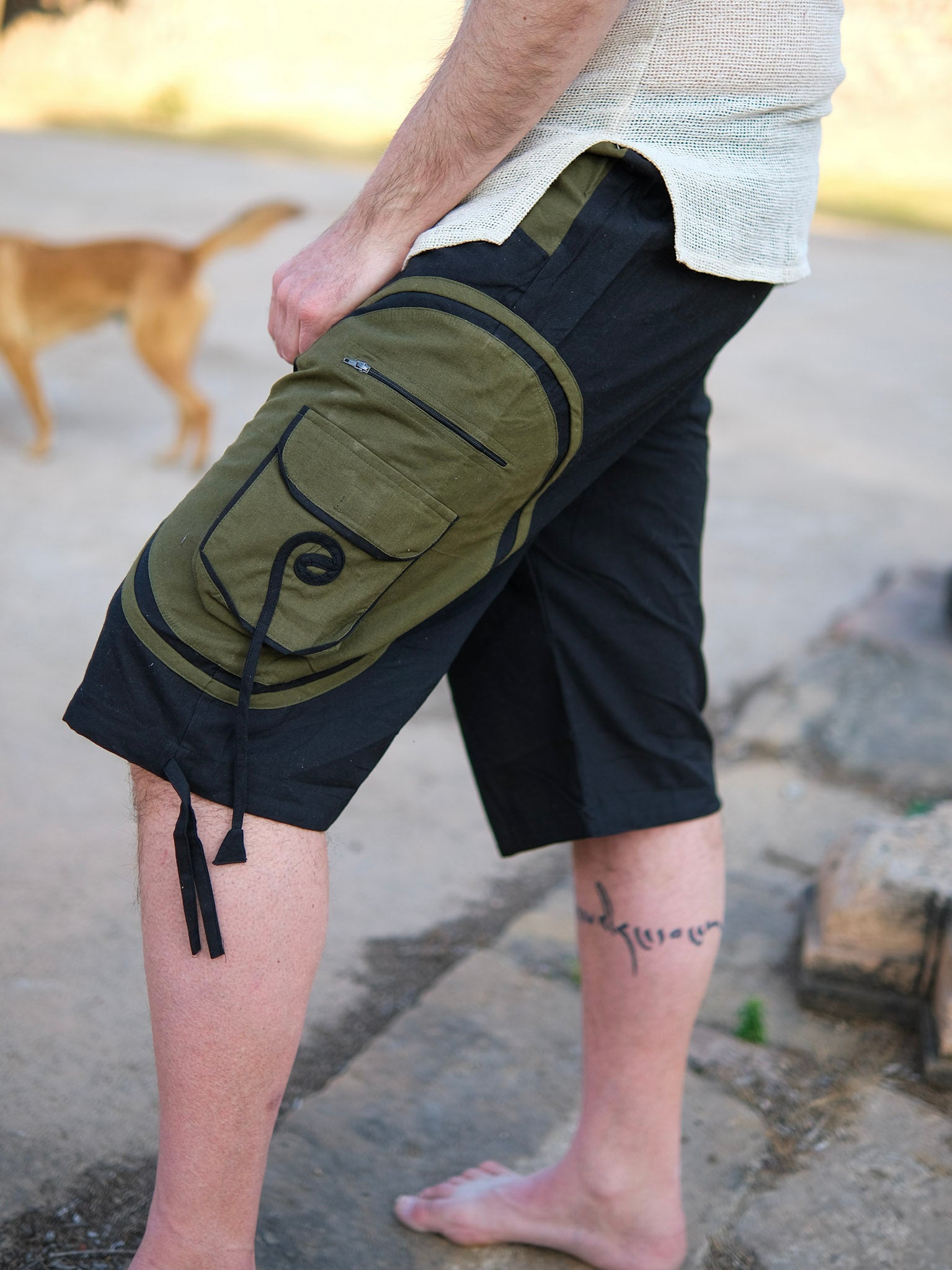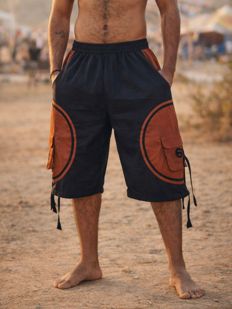 Crafted in textured black slub fabric, these cargo shorts blend rugged utility with everyday comfort. Designed with functional side pockets, zip detailing, and adjustable tie accents, they offer both style and practicality. The breathable slub texture adds a natural, earthy feel while maintaining durability for outdoor adventures or casual city wear. Easy to pair with tees, shirts, or layered looks, these shorts are perfect for those who appreciate effortless, functional fashion with a bold edge.