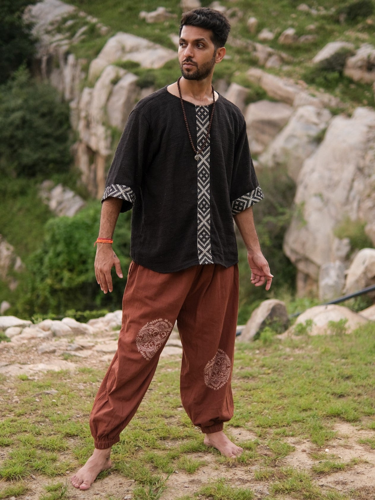 Bring a touch of bohemian charm to your wardrobe with these Beige Cotton Boho Pants featuring a bold red tribal mandala block print. Made from soft, breathable cotton, these pants ensure comfort and style all day long.
