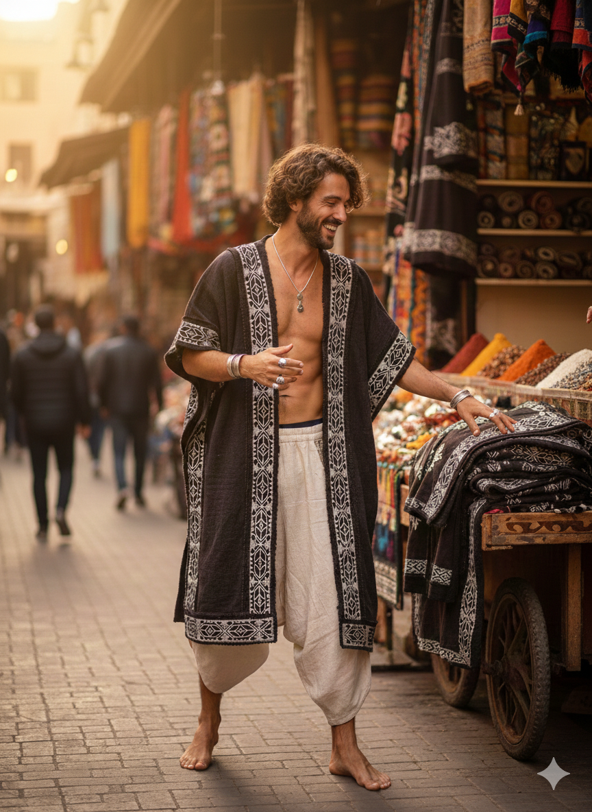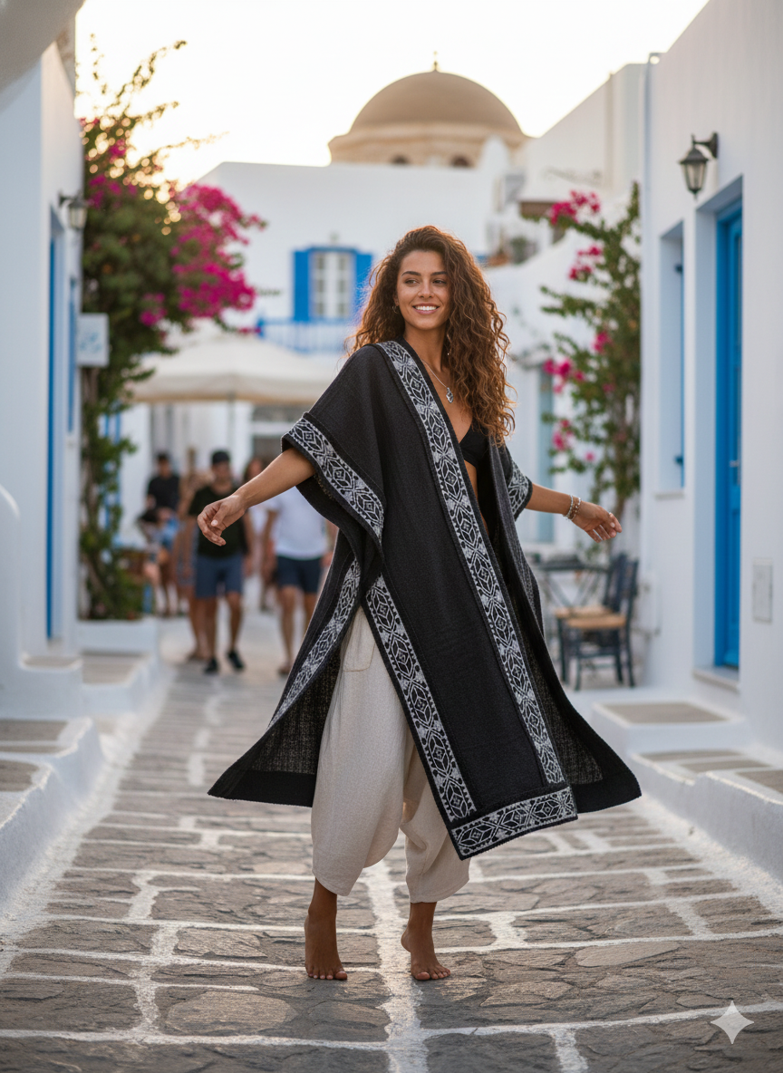 Introducing the Aarna Poncho! Made with sustainable materials, this boho-inspired poncho features a playful block print and fun fringes. Stay stylish and eco-friendly with this unique piece. Aarna Poncho! Don't wait, take this opportunity to buy now and amp up your style game! Don't miss out on the chance to add a touch of fun to your wardrobe!