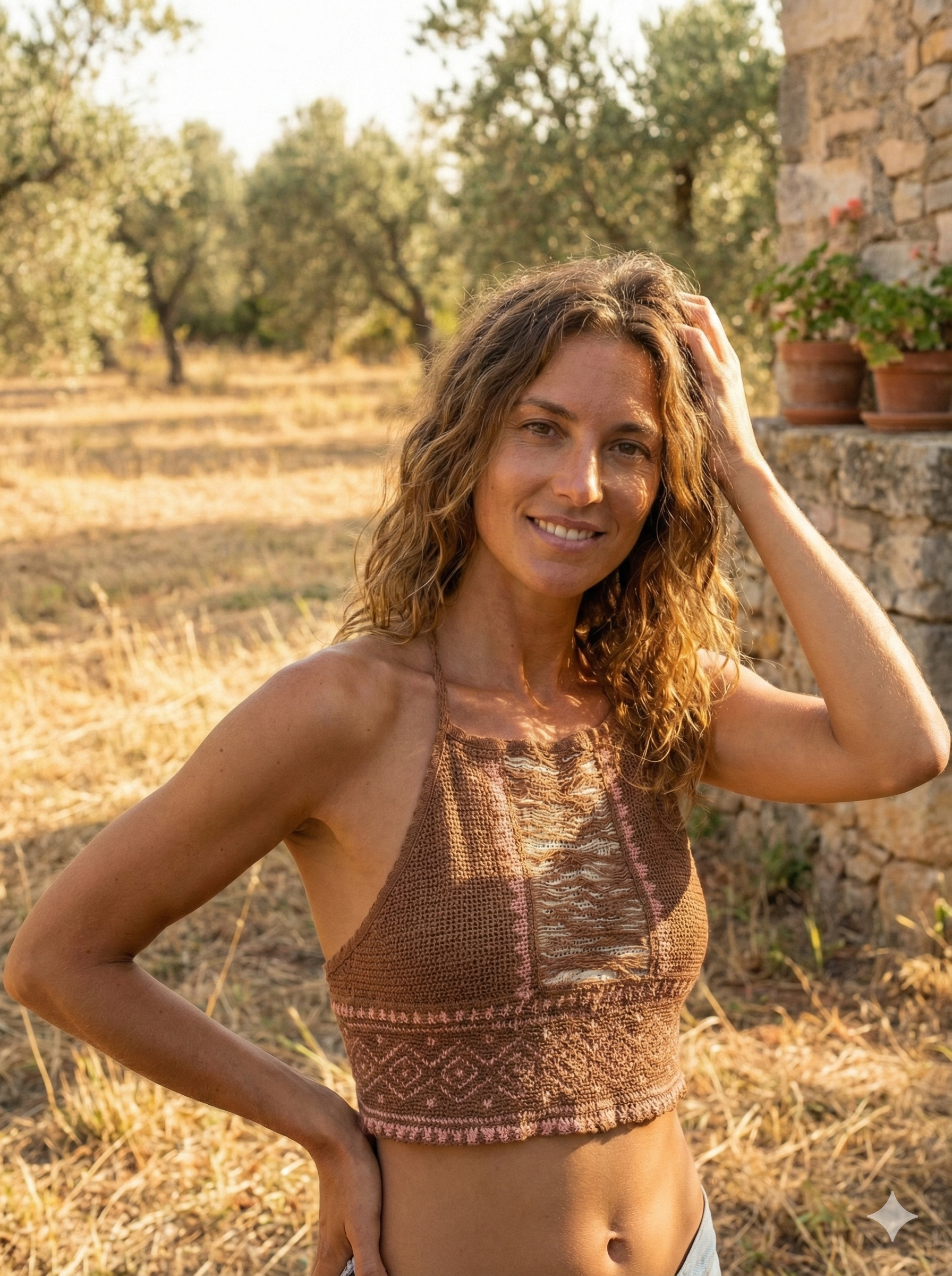Get ready to turn heads with the Akino Crop Top. This stylish halter neck top features a unique block print and playful fringes. With a back tie up detail, it's the perfect top for any occasion. Plus, it's sustainable and boho-chic! Buy it now and make a statement.