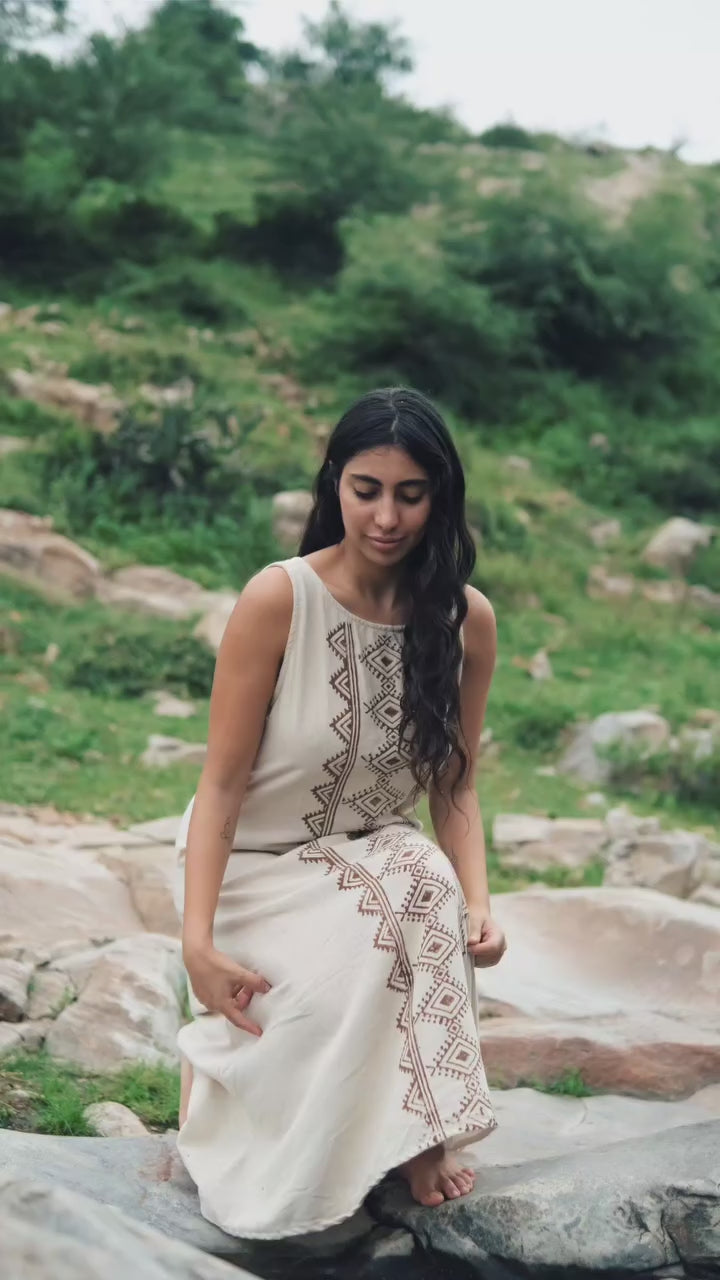 Get ready to turn heads with our Ekakshi Maxi Dress! The front block print panel design adds a unique touch to this new and sustainable boho dress. Embrace your playful side and stand out from the crowd.
