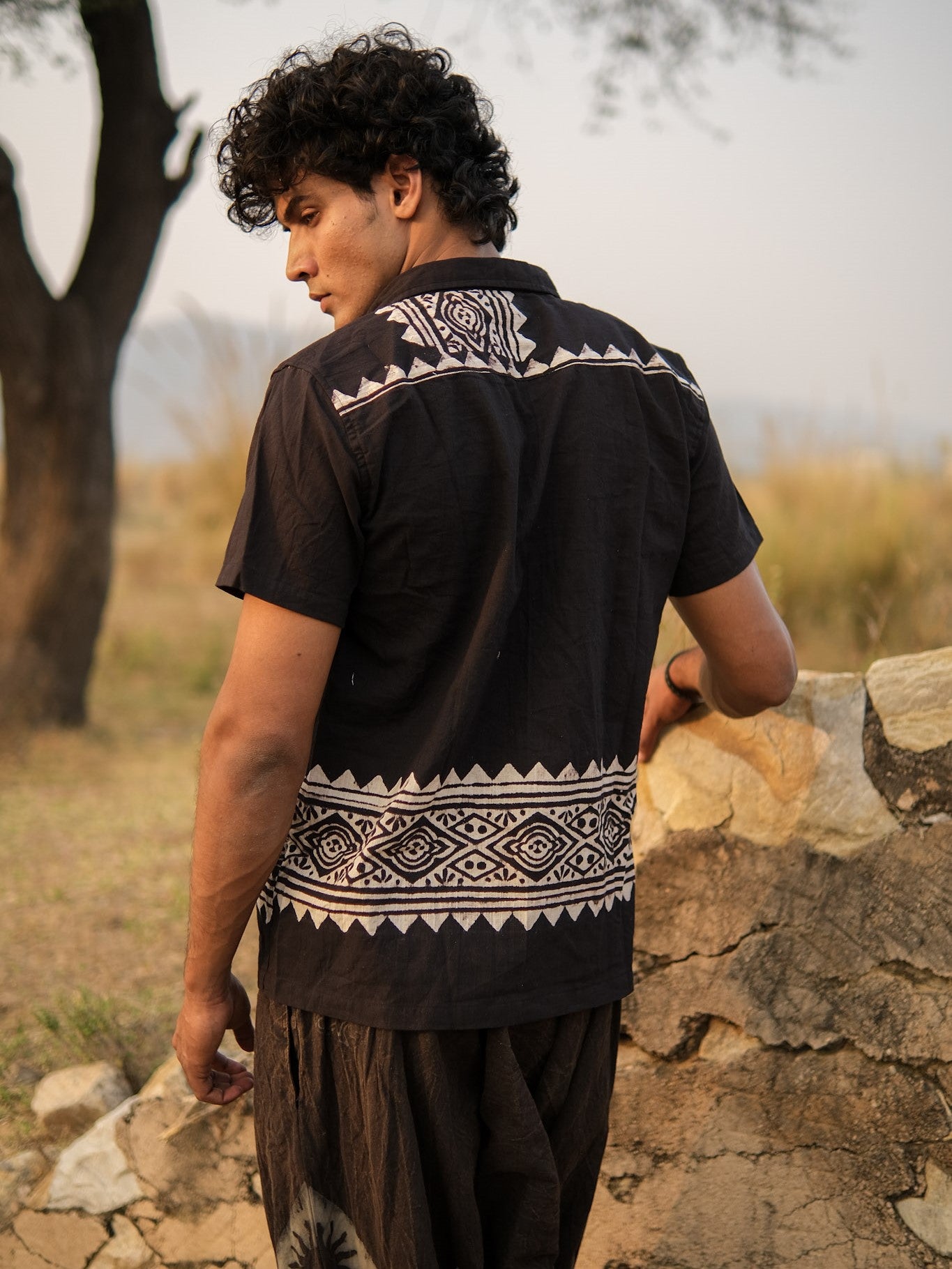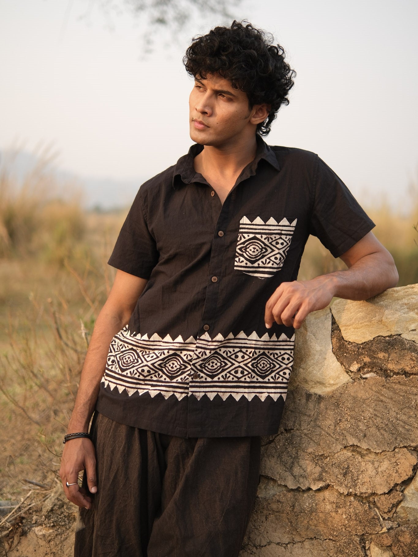 Bohemian Tribal Shirt – Block Print Men's Boho Top | Crystal Heal