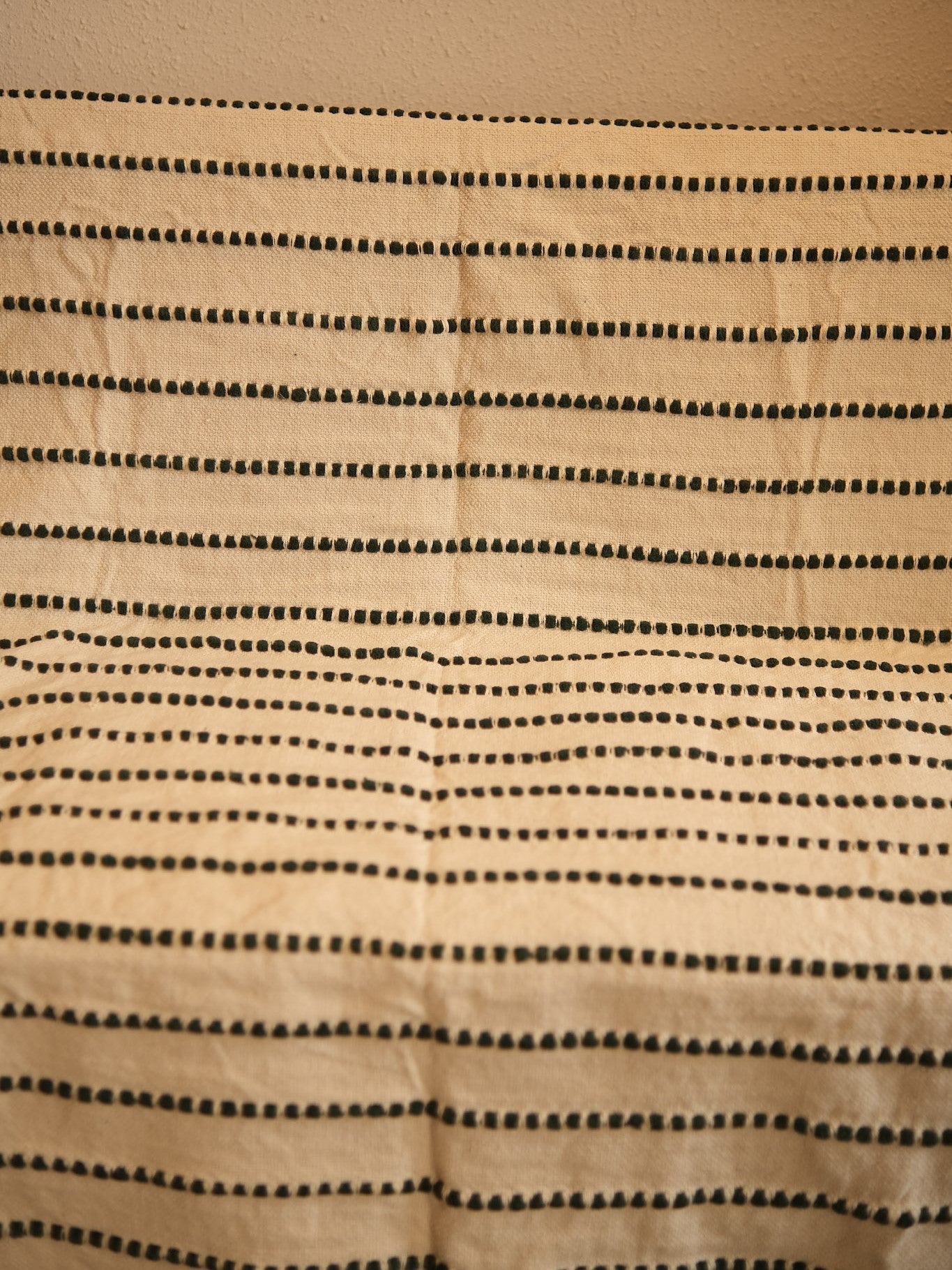 Elevate your living space with the Aadhya Handwoven Striped Cotton Sofa Throw, crafted in soft, breathable cotton and decorated with minimalist black dotted stripes. Its clean, modern aesthetic blends effortlessly with boho, contemporary, and earthy home décor styles. Each piece is traditionally woven with fine craftsmanship, creating subtle texture and outstanding durability.