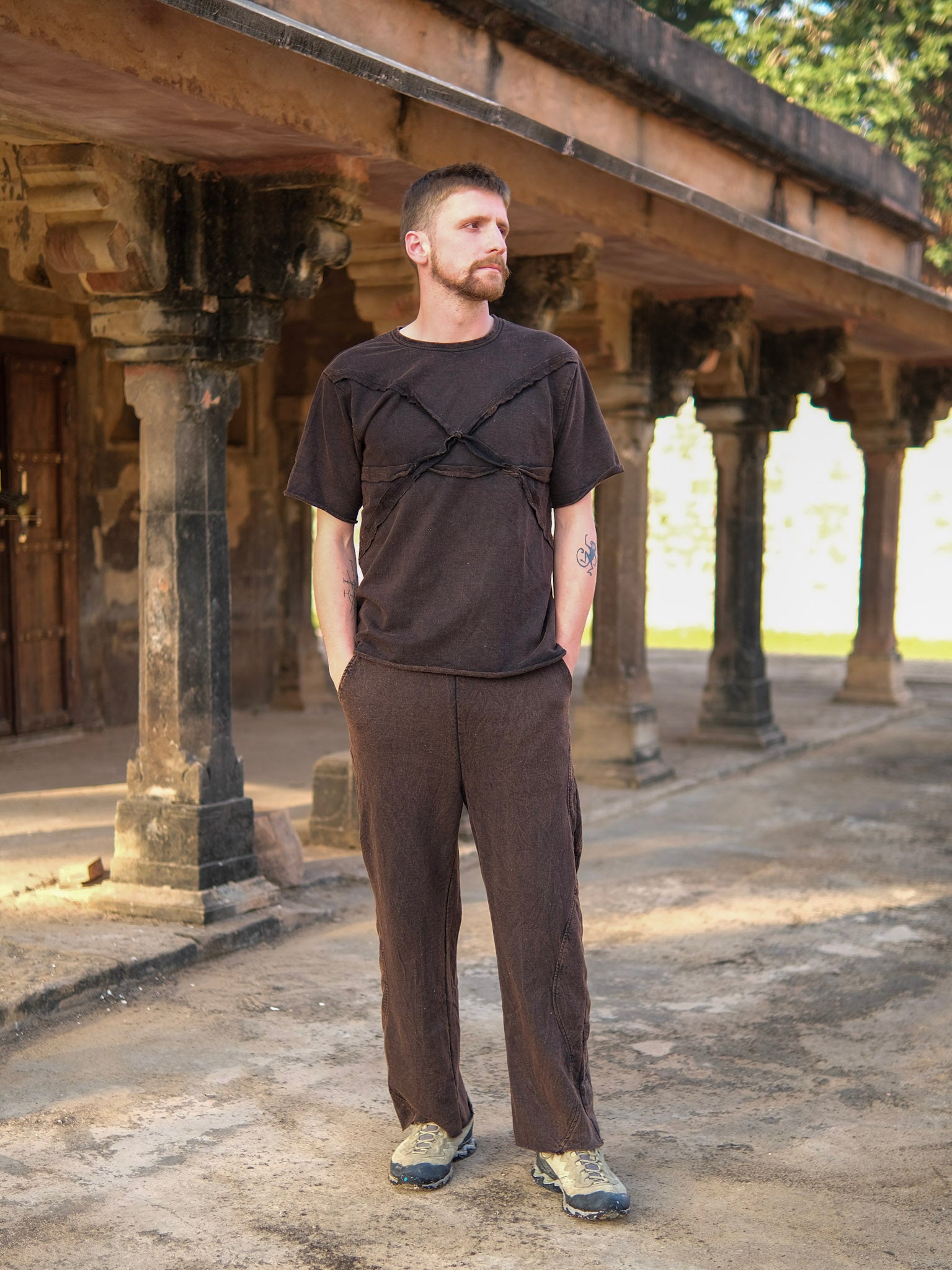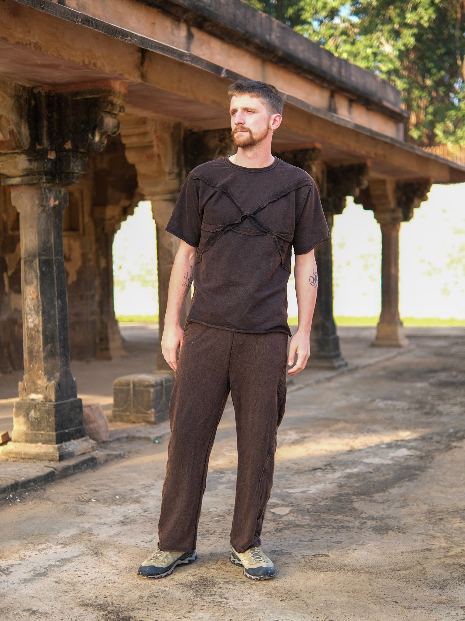 Introducing the Noah T-Shirt, a bold expression of artisanal character and everyday comfort. Crafted in breathable textured cotton, this earthy-toned tee features hand-tied fabric detailing across the front — giving it a raw, rugged, and distinctly bohemian edge.