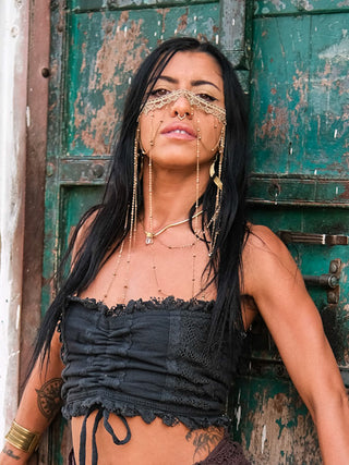 Leora Crop Top |Ruffle Lace Detail |adjustable |Crystal Heal