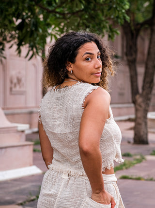 Perfect for warm, sunny days, the Tethys Croptop adds a touch of bohemian flair to your outfit, making it the ideal choice for free spirits who appreciate comfort and style. Whether you're strolling through festivals, soaking up the sun on a beach, or simply enjoying a laid-back day out, this croptop complements your relaxed, boho-inspired look with grace and ease.
