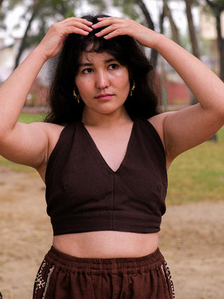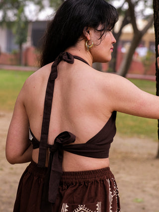 Turn heads as you show off your playful side with our Venus Crop Top! This flirty top features a unique tie-up design and a sexy backless style, with delicate back ties for an added touch of charm. Perfect for a day out with friends or a date night, this versatile top will make you feel confident and stylish, This trendy top features a flattering v-neck design and comes in a rich shade of brown that will elevate any outfit. Don't hesitate - buy it now and show off your style!