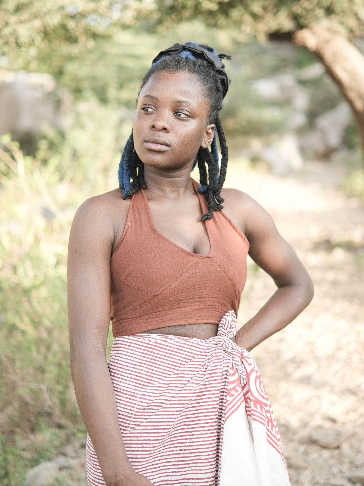 Channel effortless bohemian charm with the Jiva Halter Crop Top, crafted from soft breathable cotton in a warm brown hue. The halter neckline elegantly frames the shoulders and upper back, while the cropped length makes it ideal for pairing with high-waisted skirts or pants. Designed for effortless style, this top adds a statement boho touch to your casual and festival wardrobes alike.