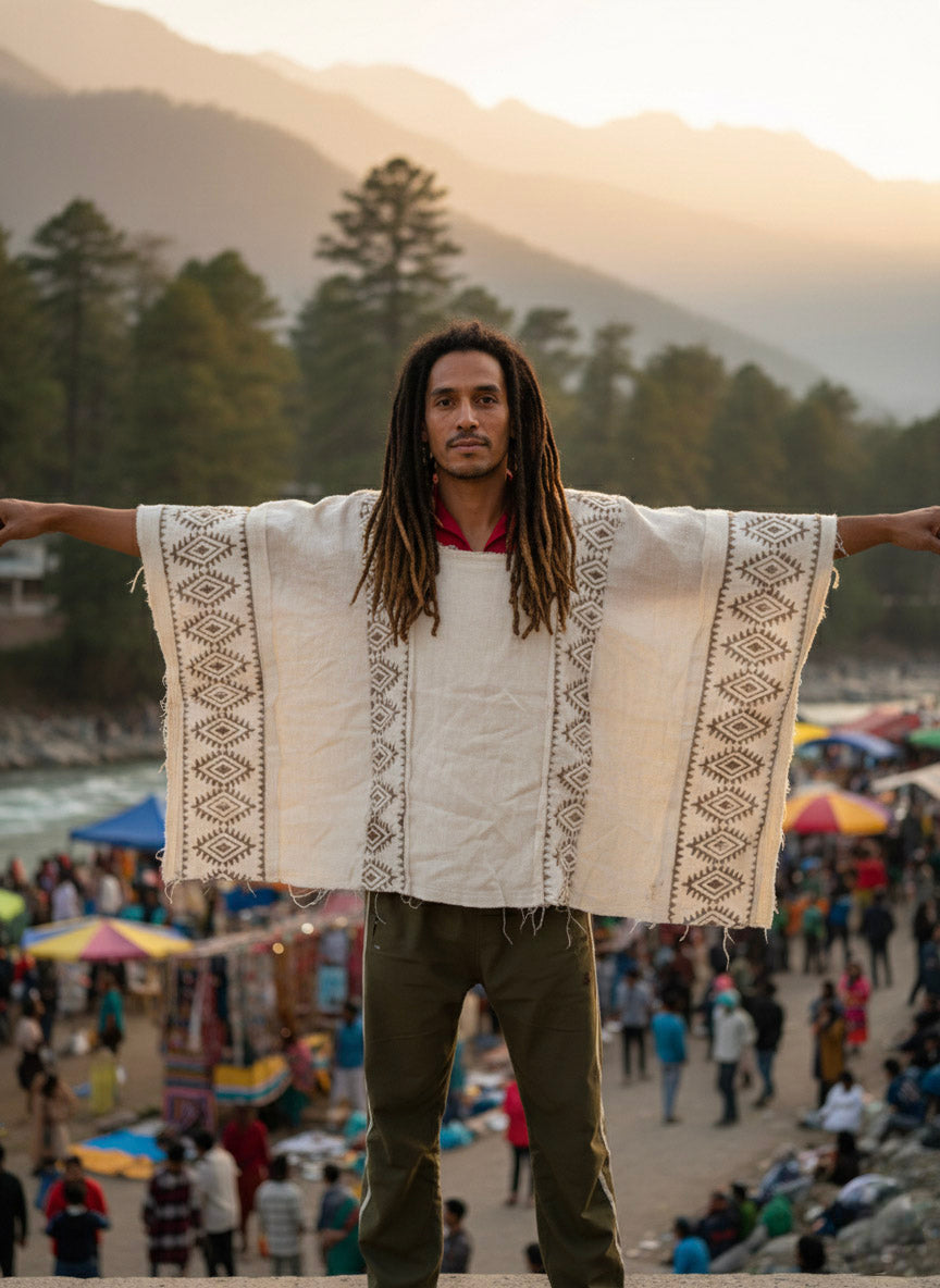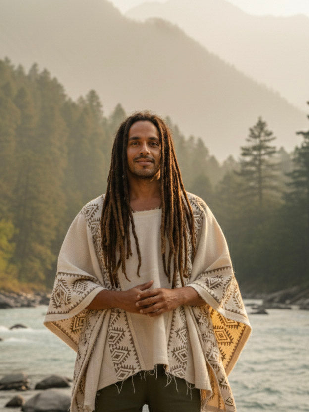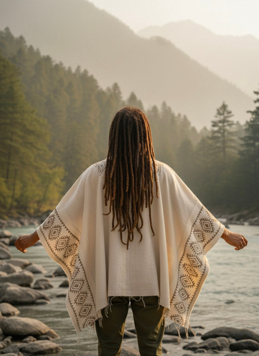 Earthloom Poncho – Handwoven Boho Cotton, One Size Fit – Crystal Heal