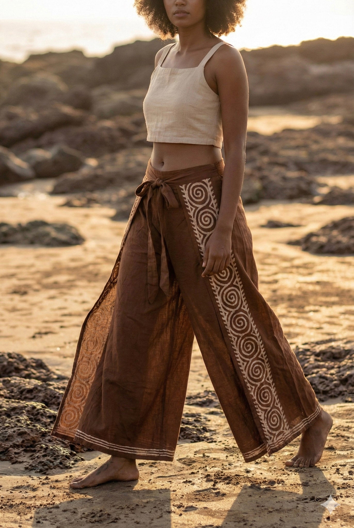 These dynamic Fisherman Wrap Pants are perfect for all your summertime jaunts! Rock the traditional Japanese fisherman style, made from 100% cotton, and feel cool and comfortable all day long. The side split fabric and elastic waistband keep you looking and feeling your best, complimented by the unique rajasthani hand block print for an extra touch of elegance. Get your hands on a pair of these beauts in green or whatever color speaks to you from sizes 26-36—you won't want to miss out!