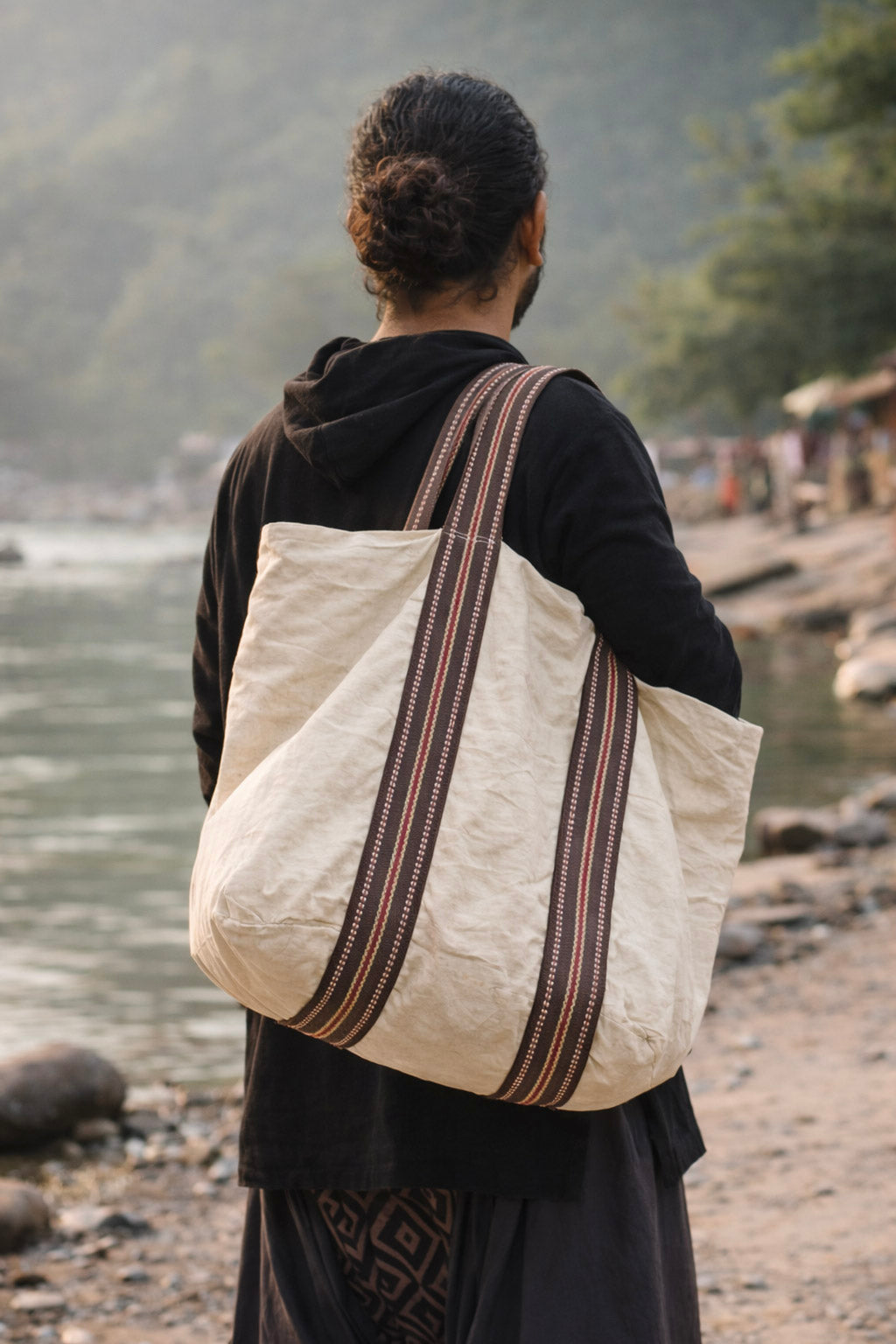 The relaxed, unstructured silhouette gives it a raw, lived-in charm, while the spacious interior easily carries your daily essentials. Lightweight yet durable, it’s perfect for travel, beach days, yoga sessions, or conscious everyday use.