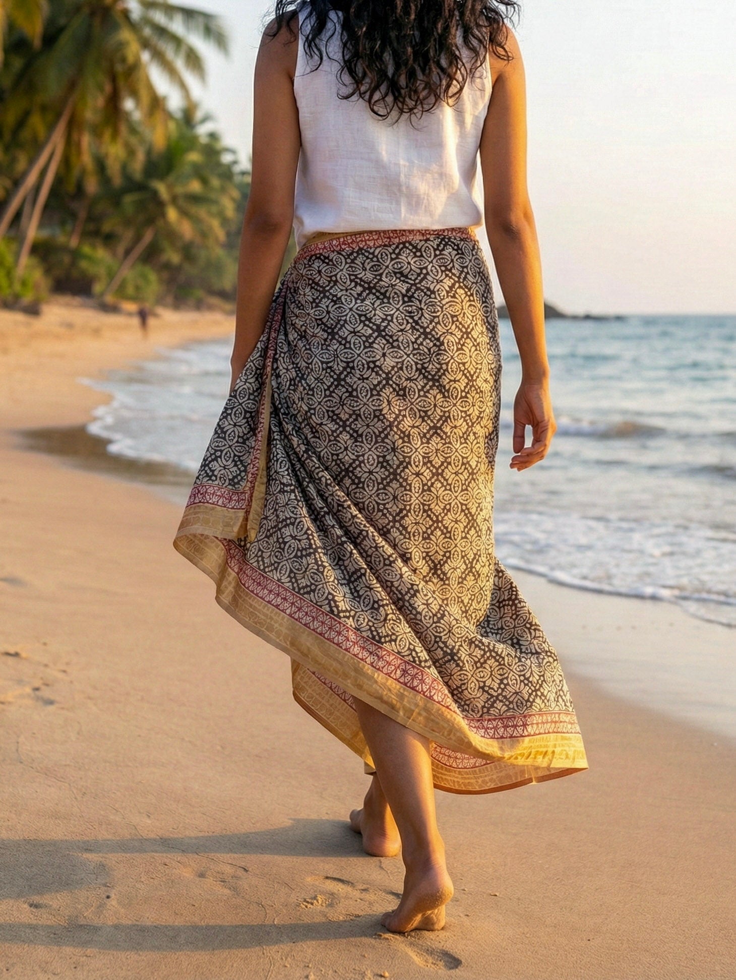 Ideal for seaside escapes, Goa-inspired holidays, yoga retreats, or everyday boho styling, this sarong pairs effortlessly with crop tops, bralettes, or relaxed shirts.