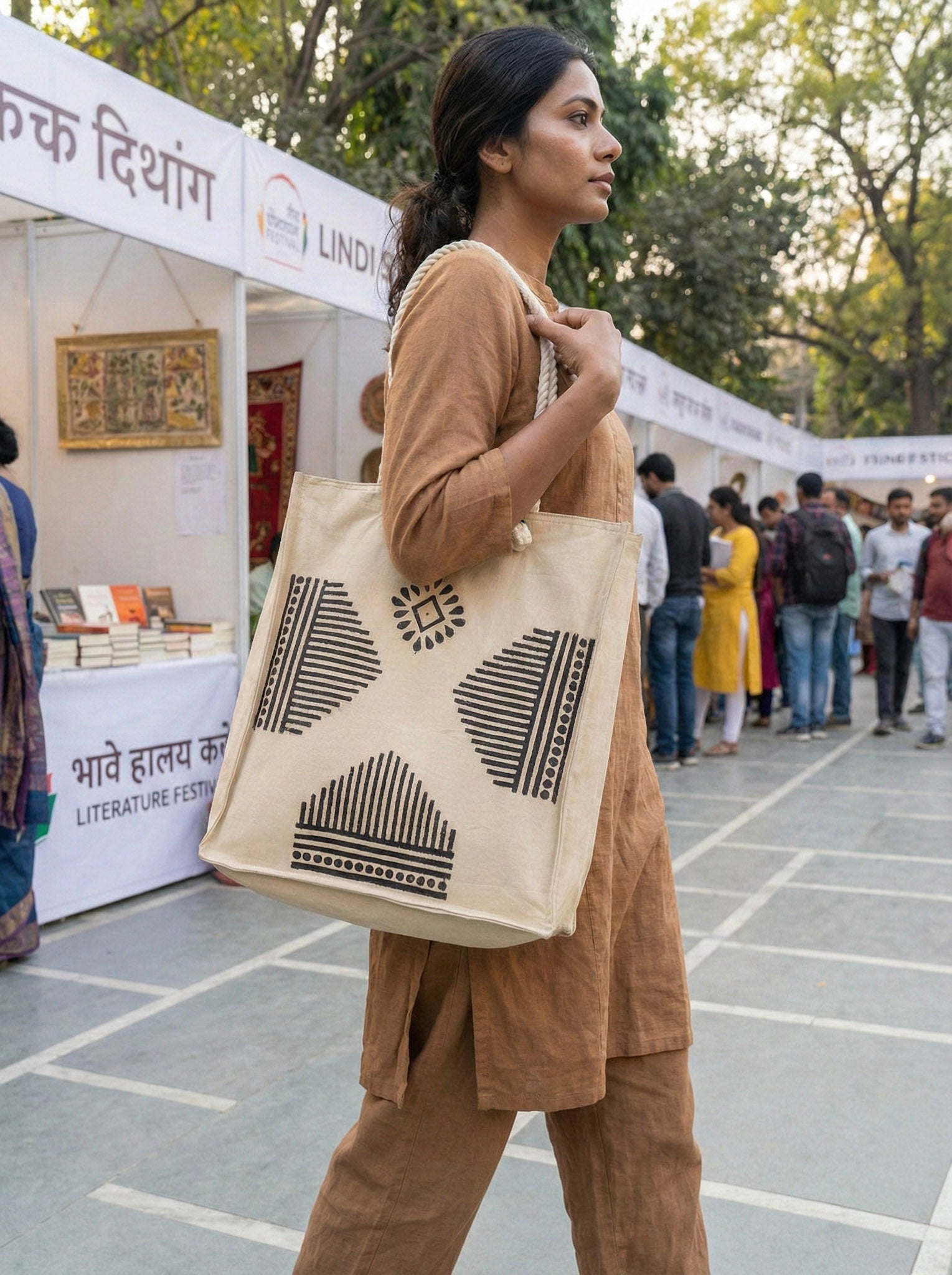 🌾 Tribal Canvas Tote – Handblock Printed Eco Bag