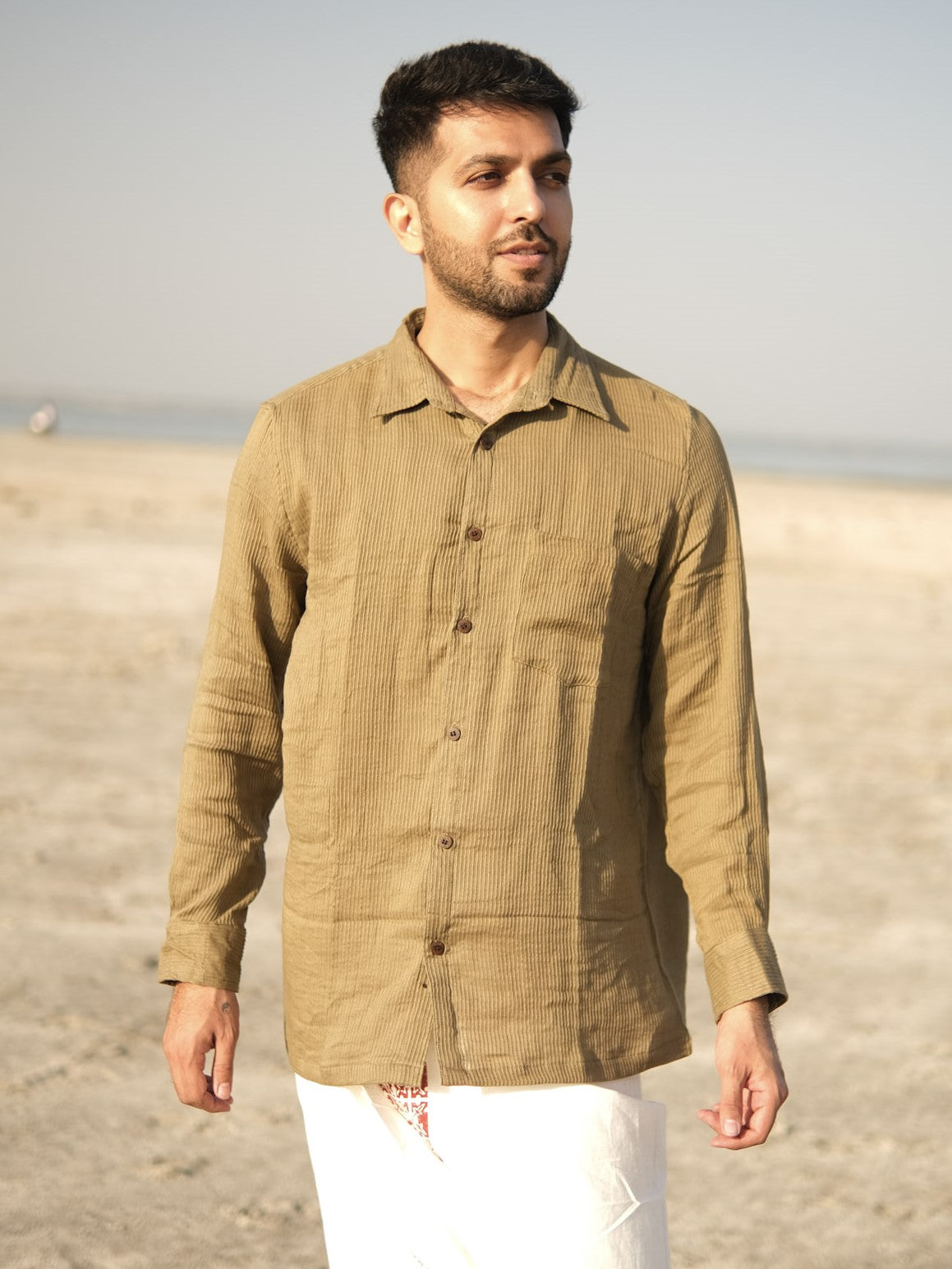 Experience everyday comfort in earthy elegance with our Vydha Desert Sage Cotton Shirt. Designed for men who love minimal yet cultural styling — this shirt blends handcrafted texture with modern tailoring.