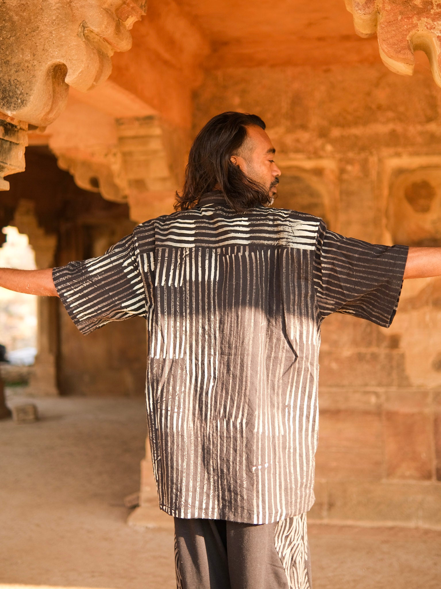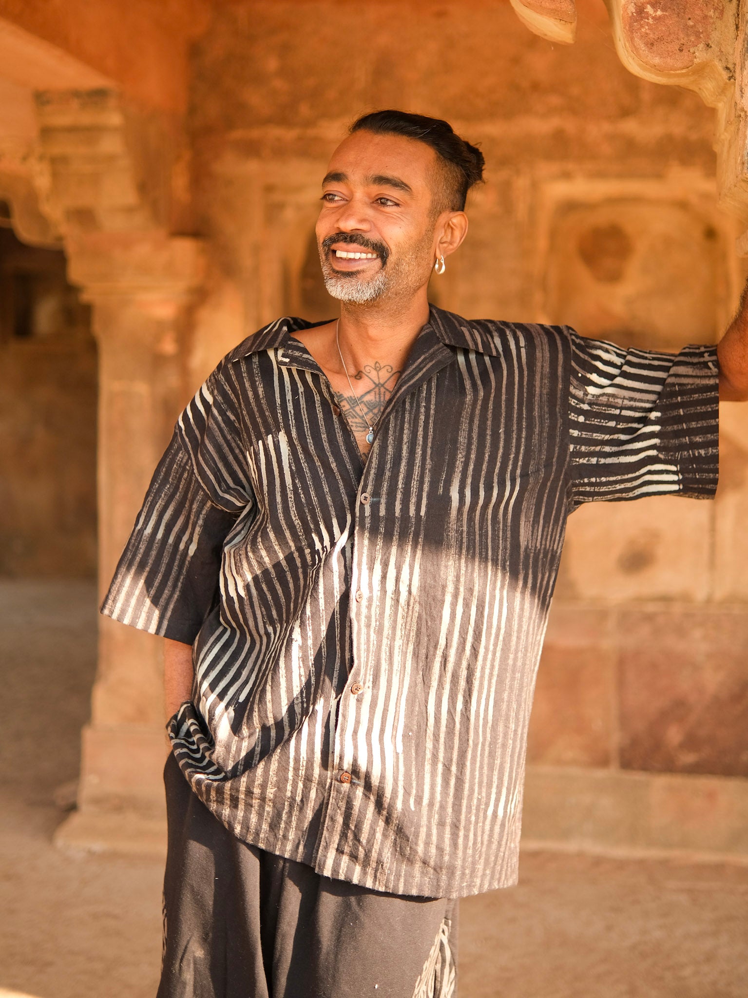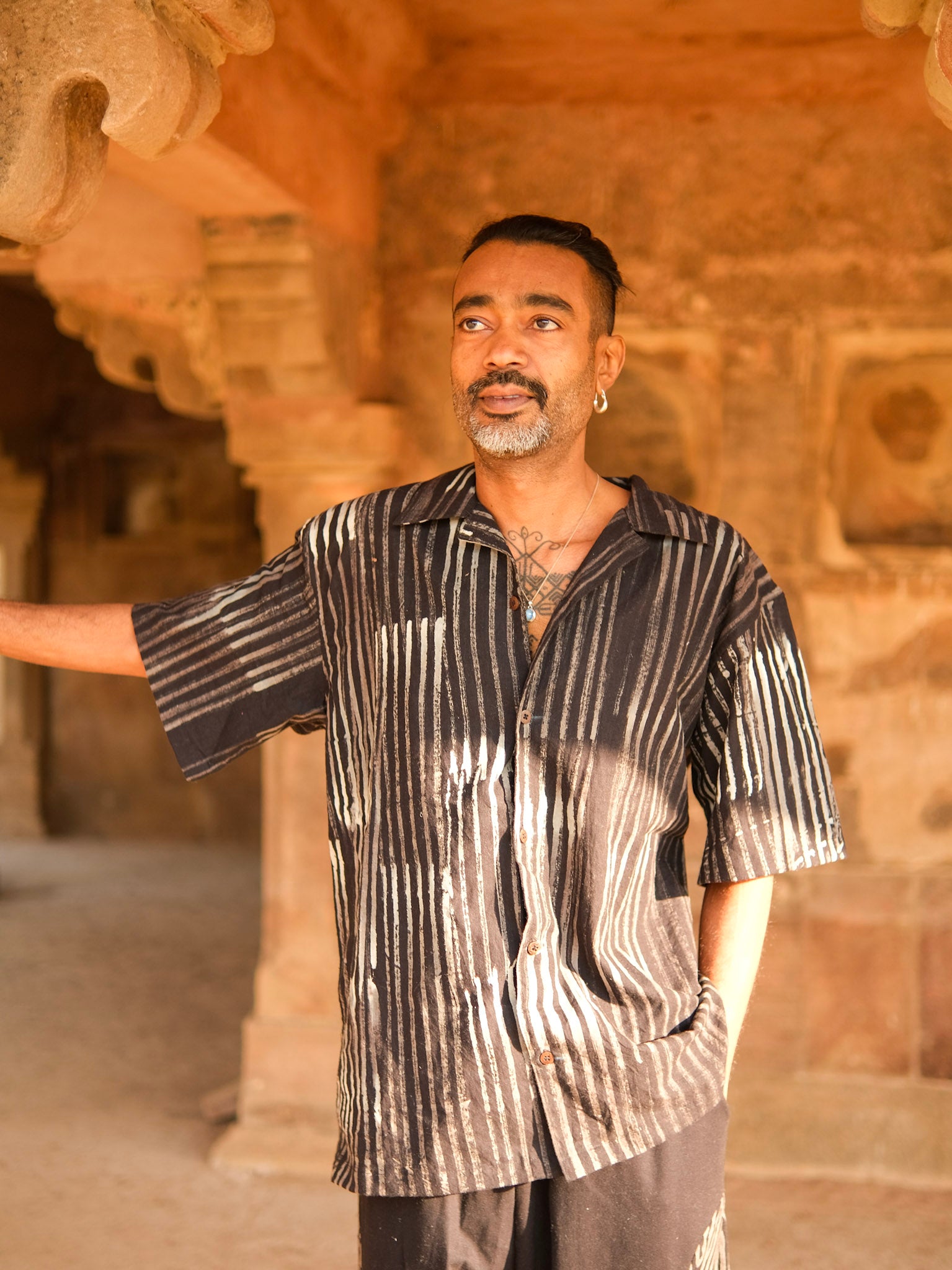 Make a statement with this artistic black printed shirt designed for the free-spirited explorer. Featuring contemporary hand-painted style streaks in contrasting white tones, this shirt blends modern street fashion with artisan craftsmanship.