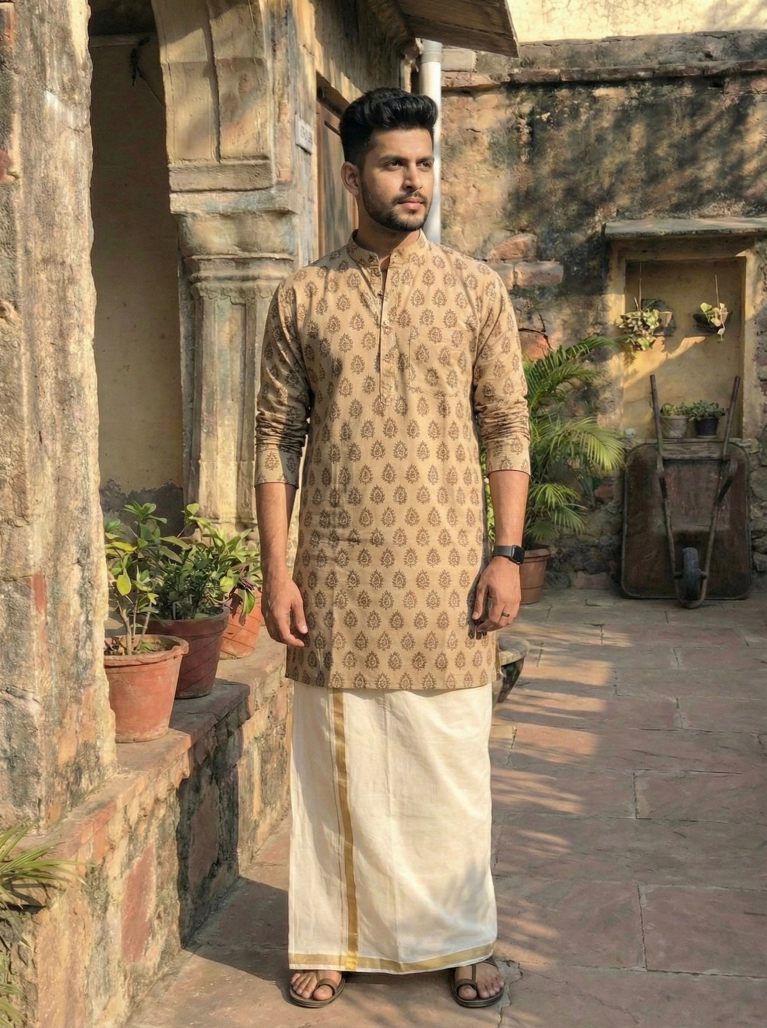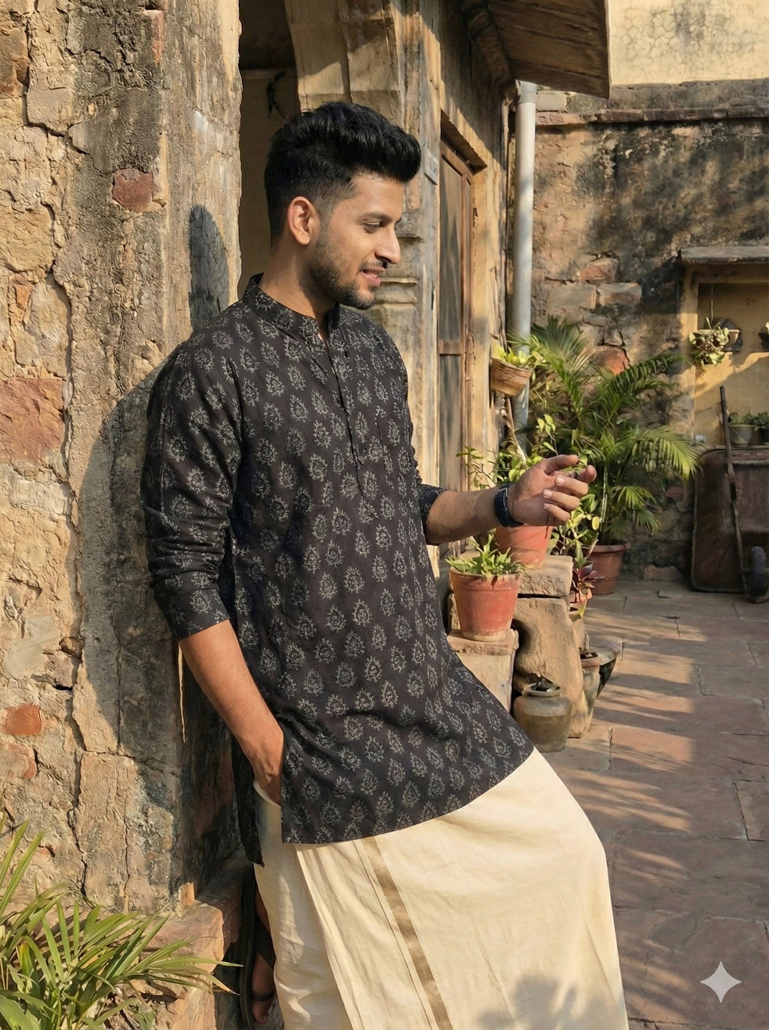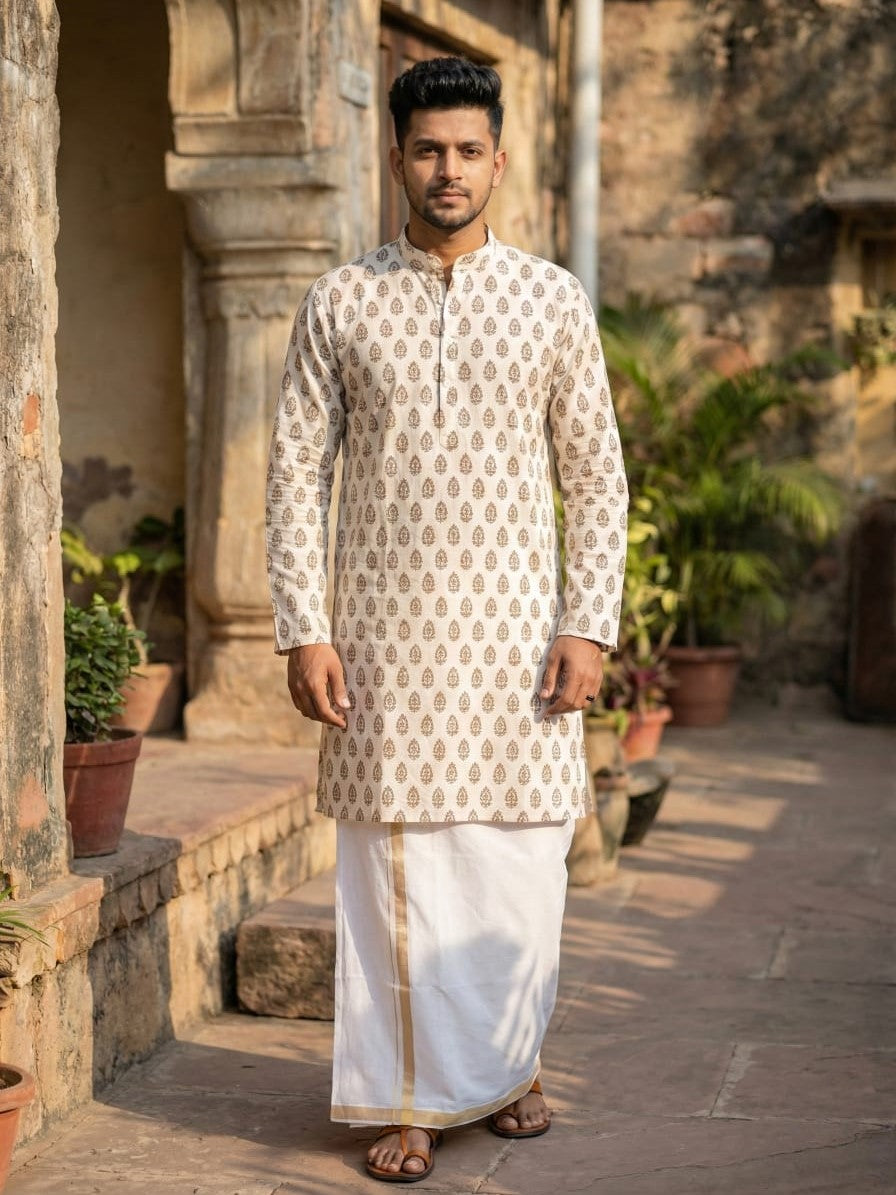 Black Block Printed Cotton Kurta for Men – Handcrafted Rajasthani Style – Crystal Heal