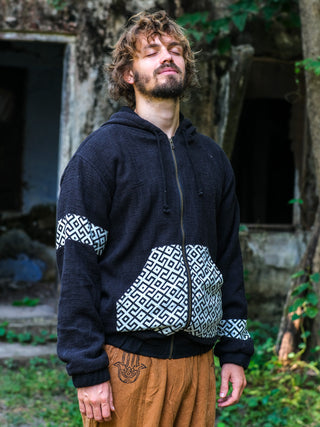 Upgrade your winter wardrobe with the Hemish Hoodie. Made from sustainable fabric, this boho-inspired hoodie is both elegant and stylish. Featuring a unique block print fabric patch, this hoodie will keep you warm and on-trend while also being environmentally friendly. Perfect for adding a touch of style to your winter outfits.
