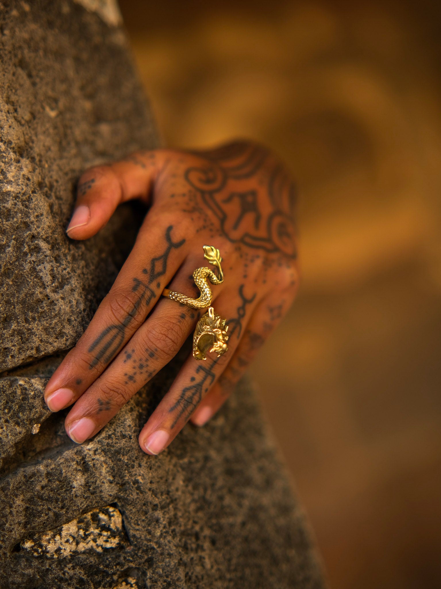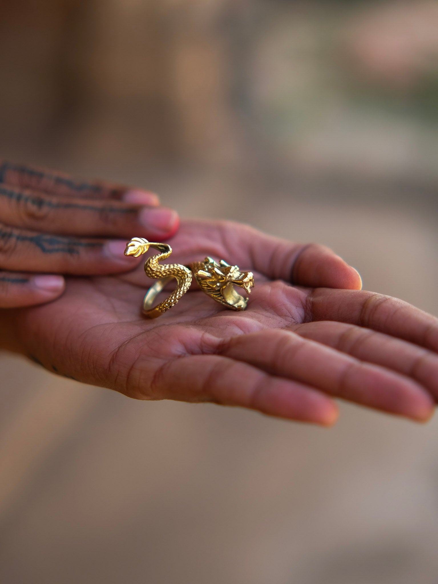 Unleash your inner warrior spirit with our Imperial Dragon Adjustable Ring, a bold fusion of ancient mythology and modern boho fashion. Hand-crafted in an antique gold finish, this statement ring features a detailed dragon wrapped around your finger — representing power, protection, and fearless confidence.