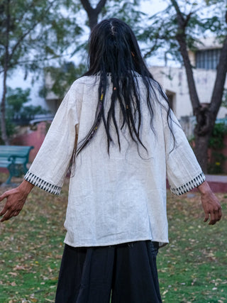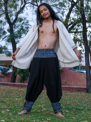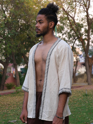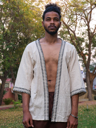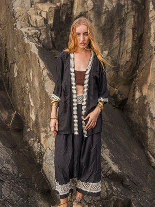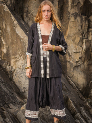 Let your inner artist shine with the Kalakar Kimono! Crafted from versatile and durable viscose fabric, this black shrug with a golden Rajasthani border is 100% hand-made by local Indian artists, giving you a look that's nothing short of masterful. Unleash your inner creative and bring out your inner Kalakar when you slip into this one-of-a-kind masterpiece!