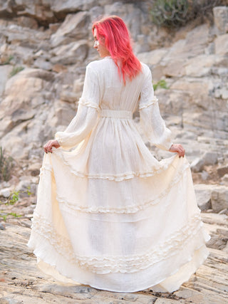 Experience unparalleled comfort and style with our Sagarika Maxi Dress. The premium quality fabric boasts an elegant design, allowing you to make a statement without sacrificing comfort. With a unique bohemian look, this flared dress is perfect for any occasion. Elevate your wardrobe with this amazing dress.