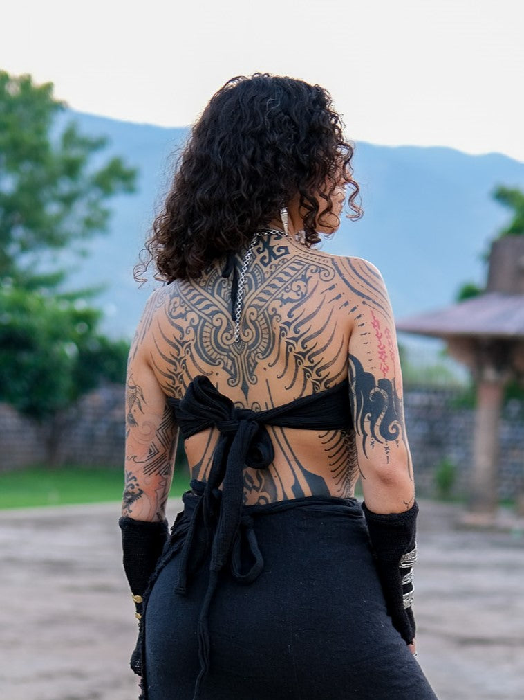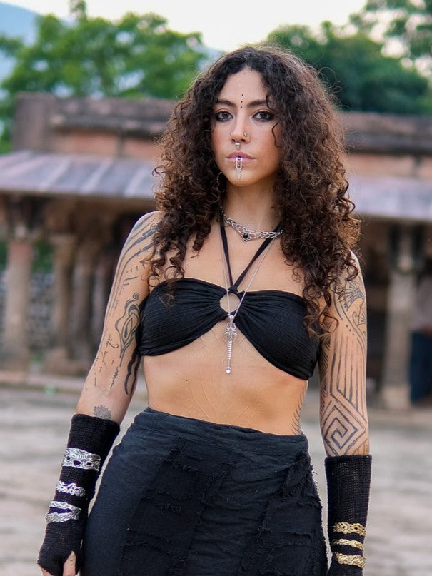 The Yaska Top Boho Halter Tube Top combines minimalist design with bold tribal flair in a versatile black hue. Made from soft, breathable cotton, it ensures comfortable wear for festivals, beach outings, or layering under shrugs and kimonos. This top is an ideal choice for those seeking to express a free-spirited, adventurous style with ease and comfort.