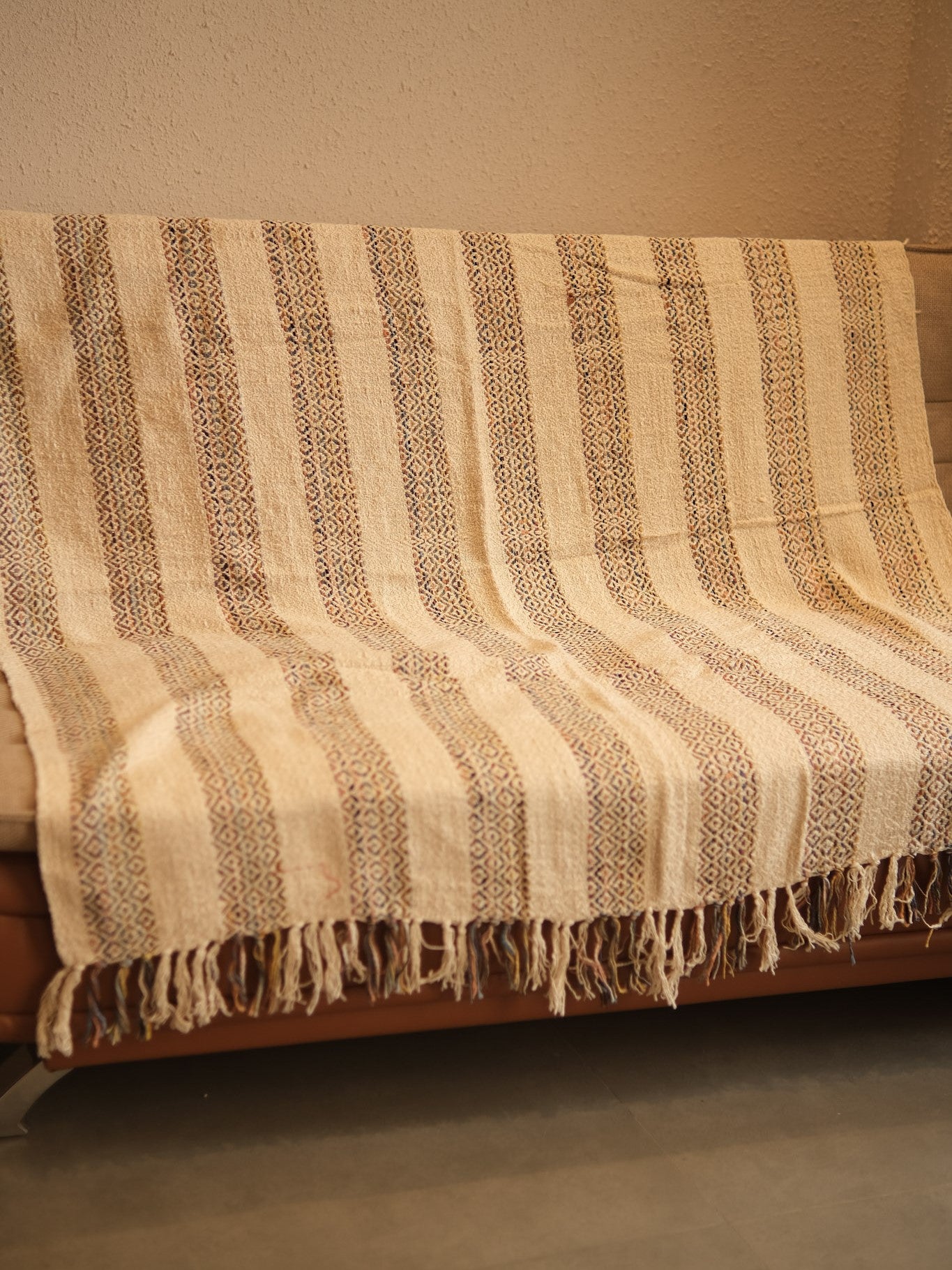 Made from soft, breathable cotton, it drapes beautifully over sofas, daybeds, and couches, offering both comfort and style. The tasseled edges add a rustic handcrafted touch that enhances the aesthetic.