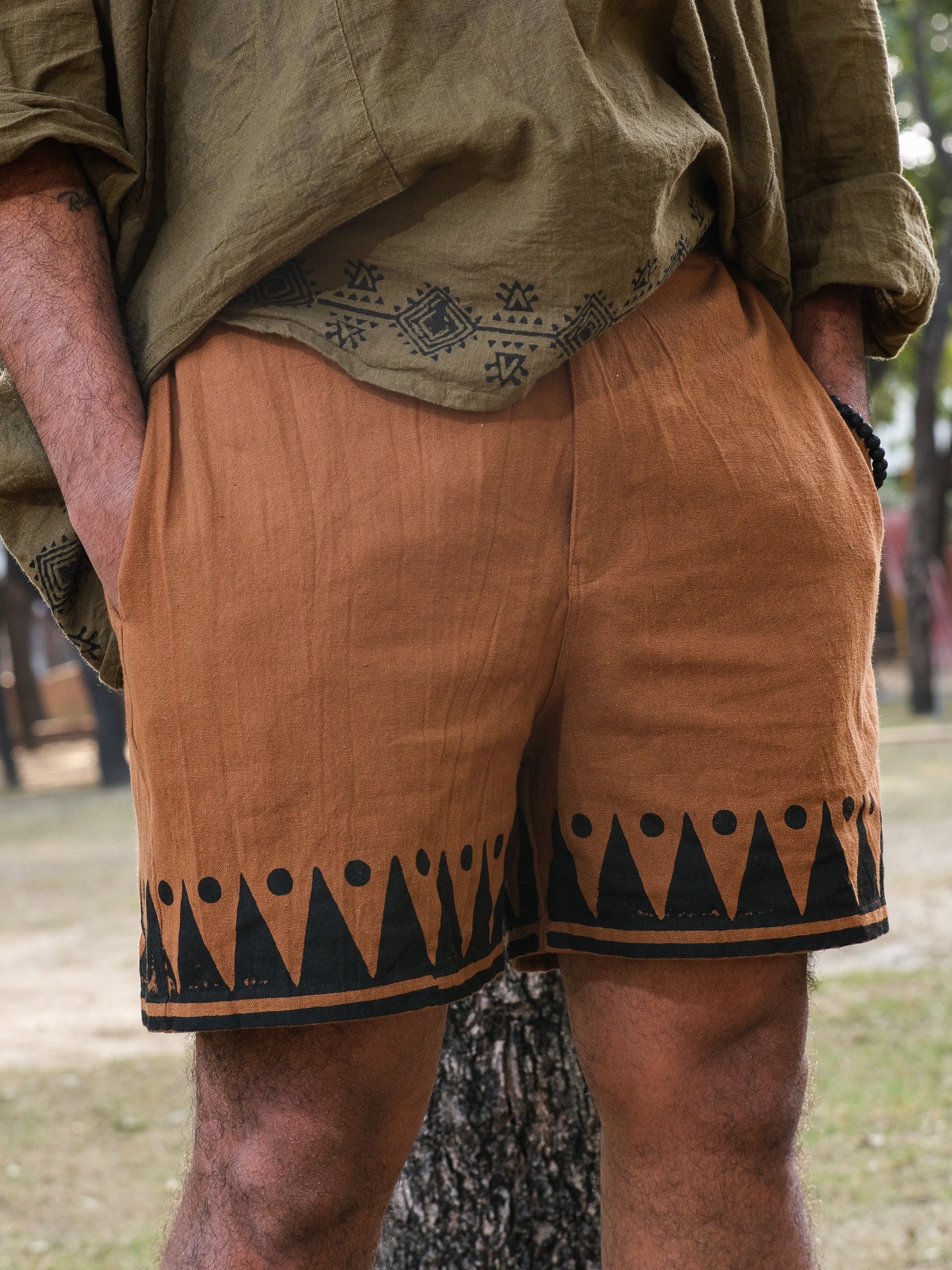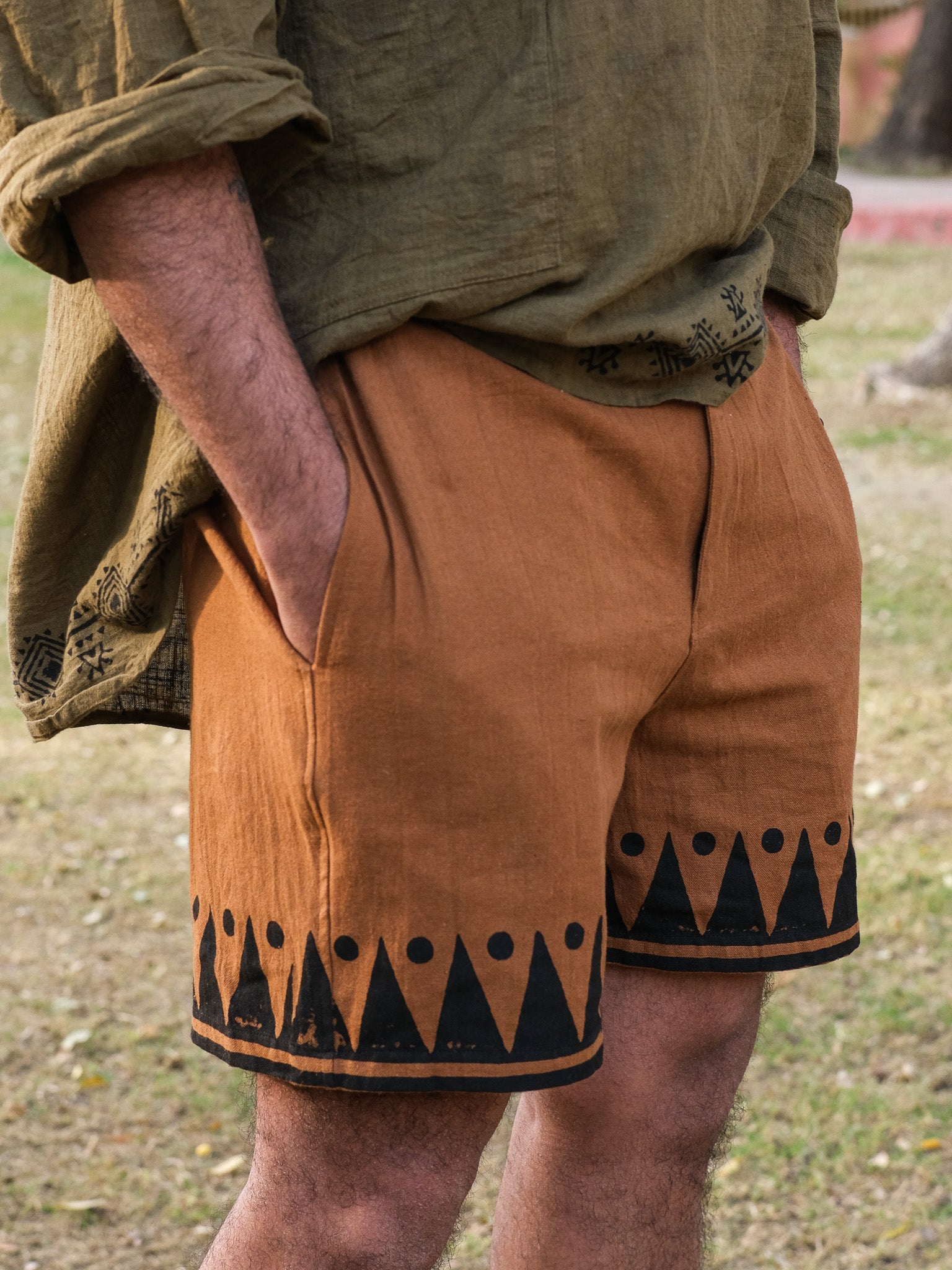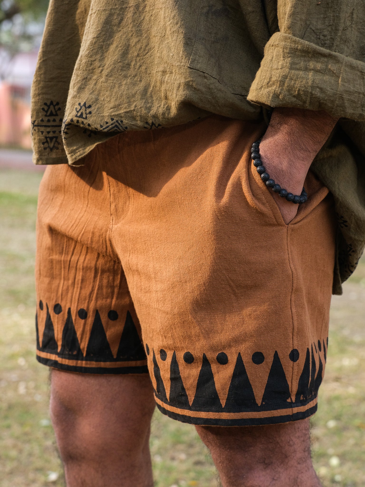 Get hip with our Kangura Shorts! Made from soft cotton, these shorts feature a unique Rajasthani tribal print, perfect for adding a bohemian flair to your outfit. With elastic on 2 sides, these shorts provide a comfortable fit and fall just above the knee. Embrace your boho side with these playful and stylish shorts.