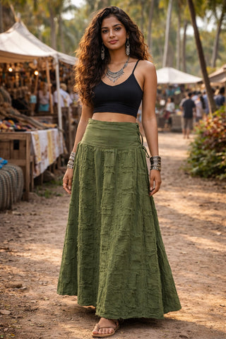 Dharitri Skirt Boho Layered Cotton Skirt – Tribal Festival Wear