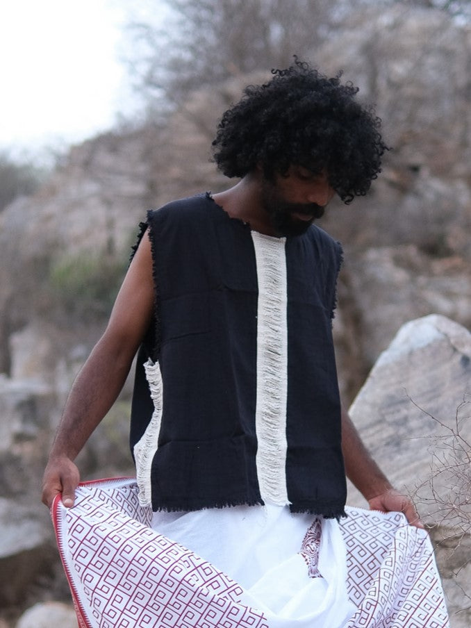Wrap yourself in the splendor of Nagaland's Konyak tribe with the Konyak Vest! Enjoy the comfort and style of this tribal-inspired vest, designed to seamlessly blend in heritage and modern style. Available in S/M and L/XL sizes, this unique vest is a beautiful homage to the Konyak tribe! So dress to impress and pay tribute to the tribe with the Konyak Vest!
