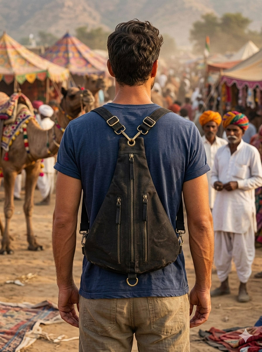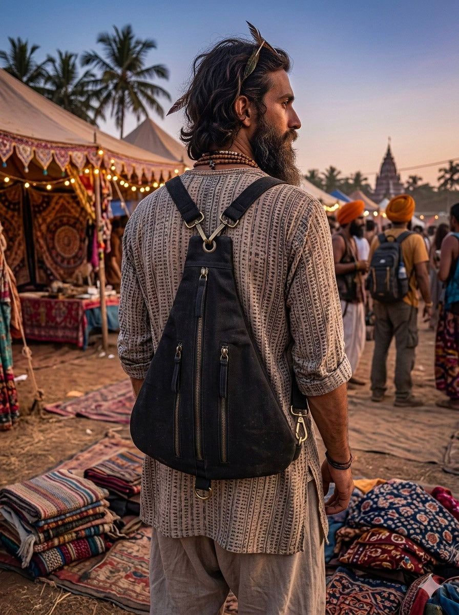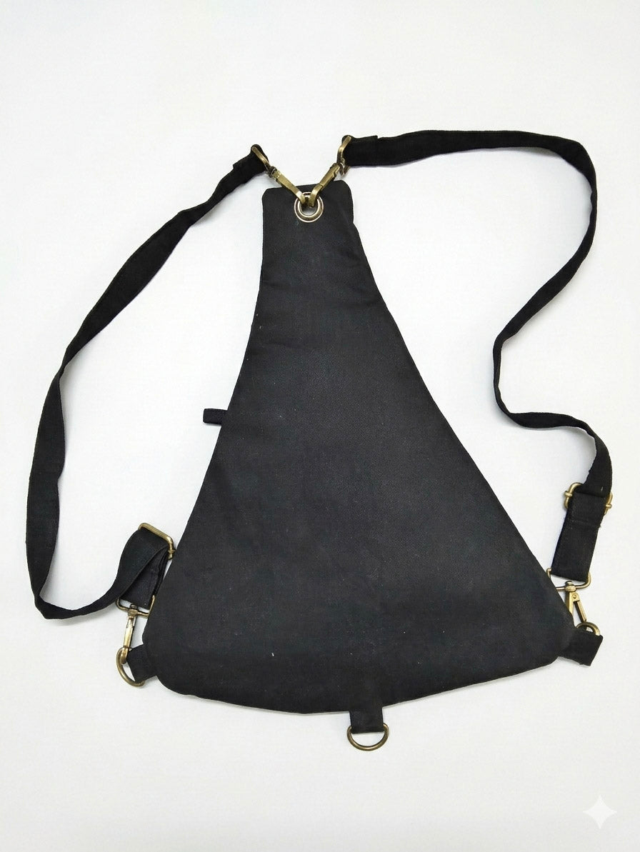 Its unique triangular silhouette and multiple zipper compartments make it perfect for keeping your essentials organized while moving through crowded festivals, markets, or travel destinations. The secure pockets allow easy access to your belongings, while the adjustable shoulder straps provide a comfortable fit for long days of adventure.