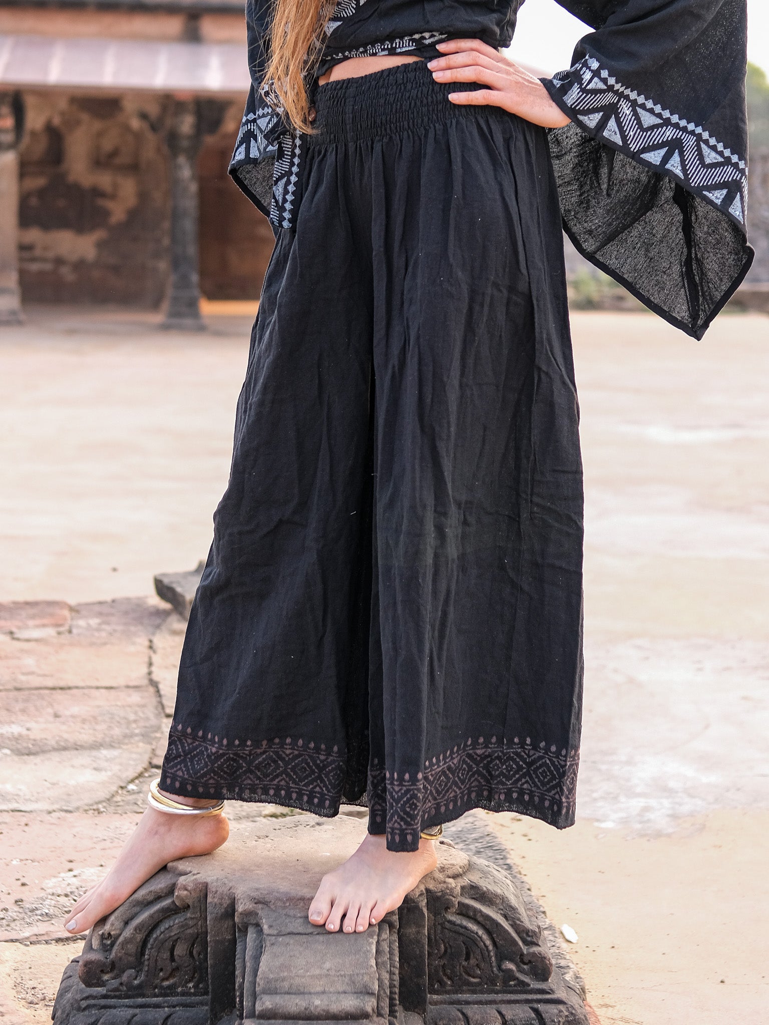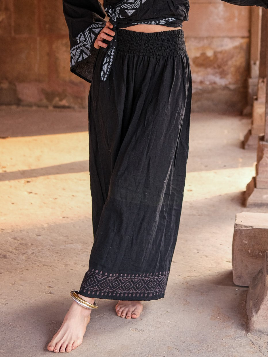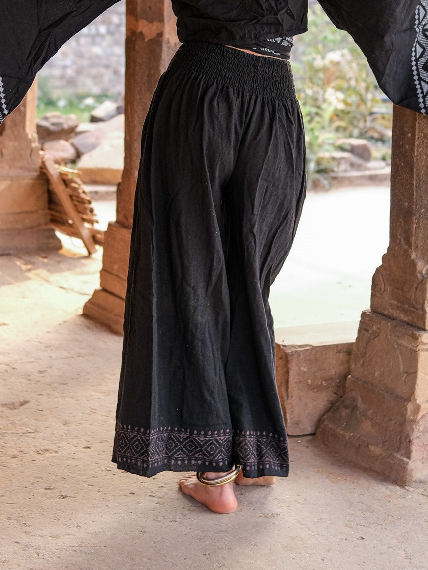 Indulge in comfort and style with our "Medusa Palazzo Pants"! Stretchy, breathable, and featuring a whimsical Rajasthani handblock print, this pant is a perfect pick for yoga, lounging, or wherever the day takes you! With a free size fit for waists from 26-36 inches, you'll be feeling comfy and looking boho-chic. Namaste!
